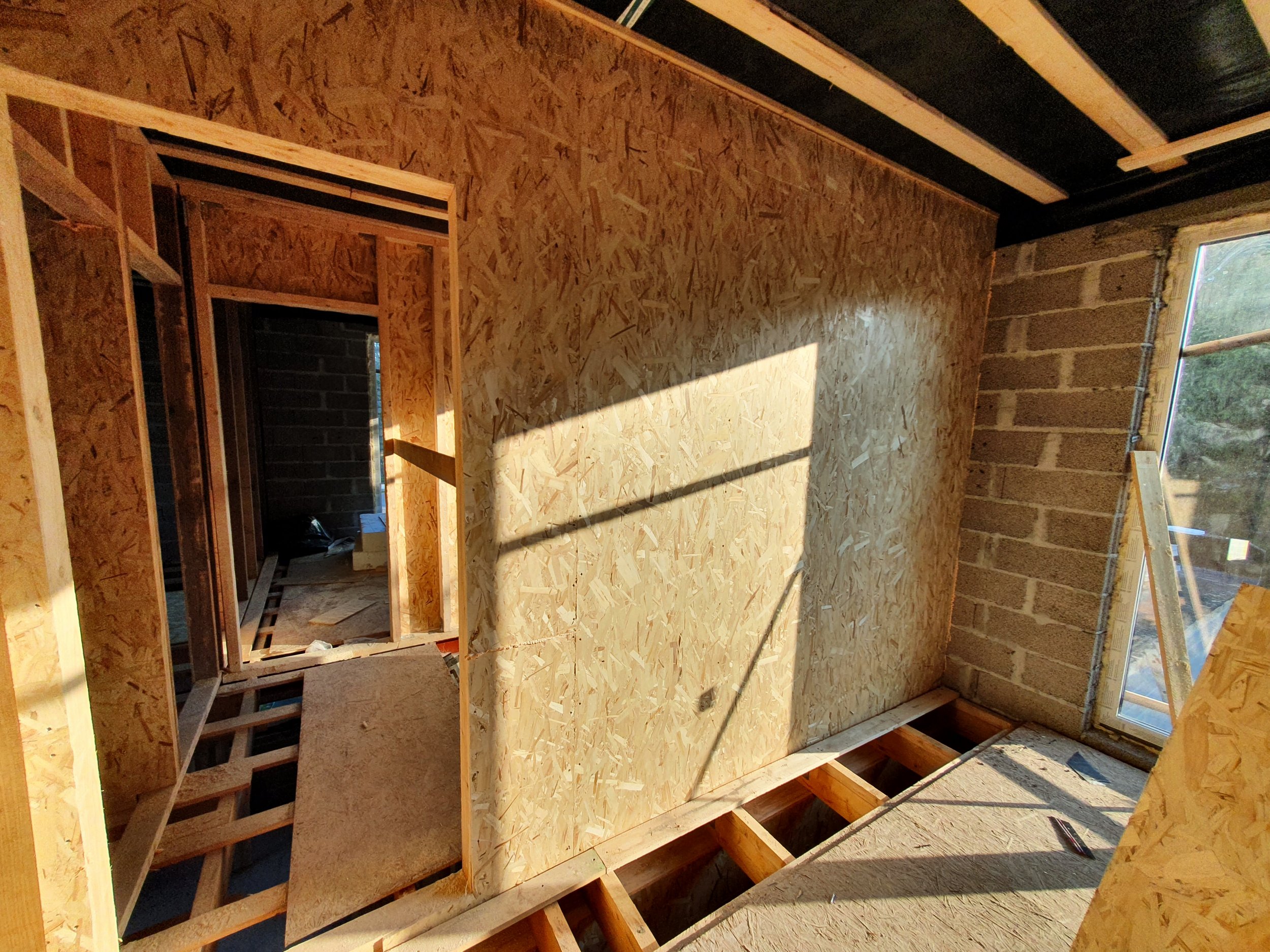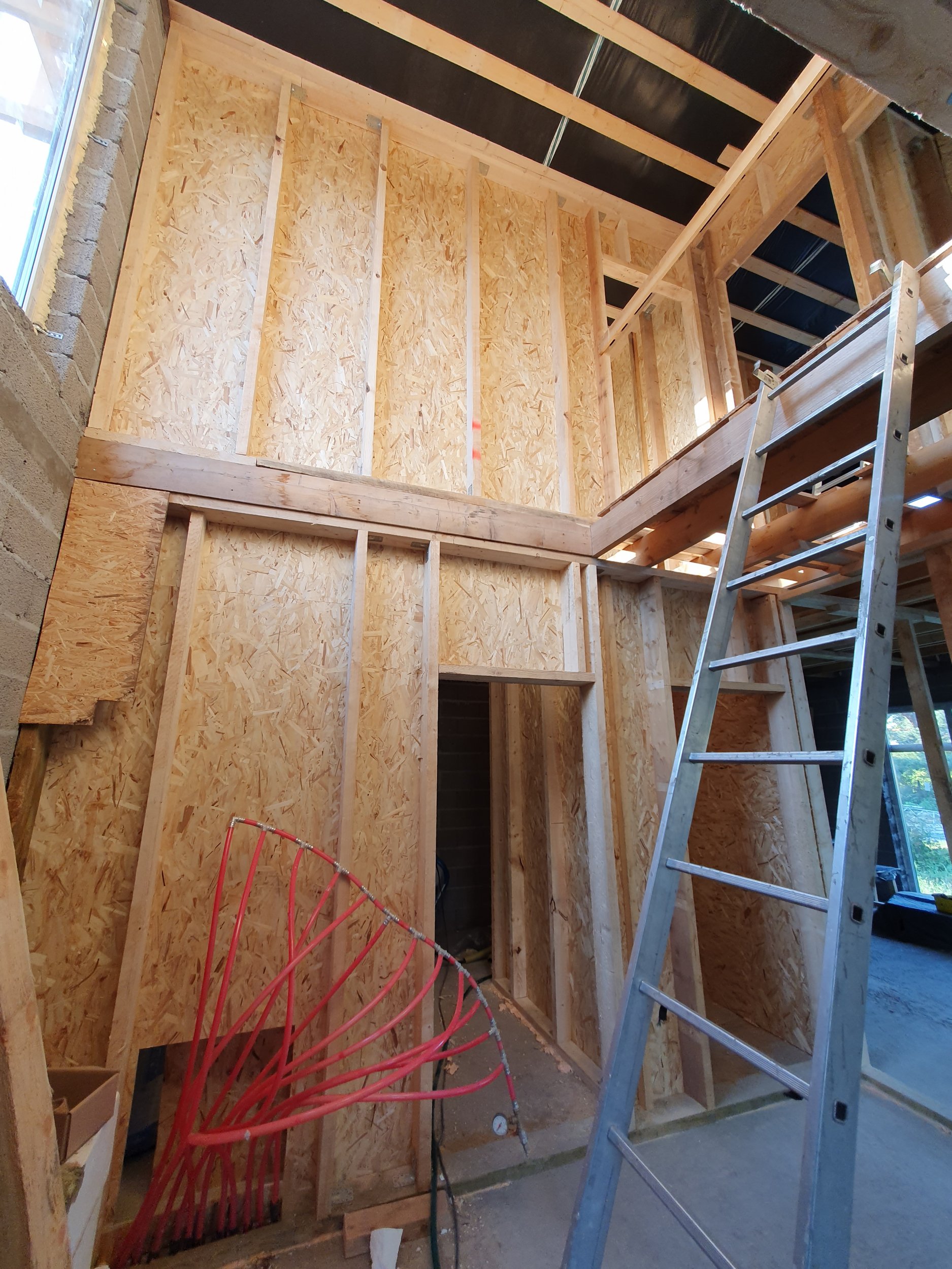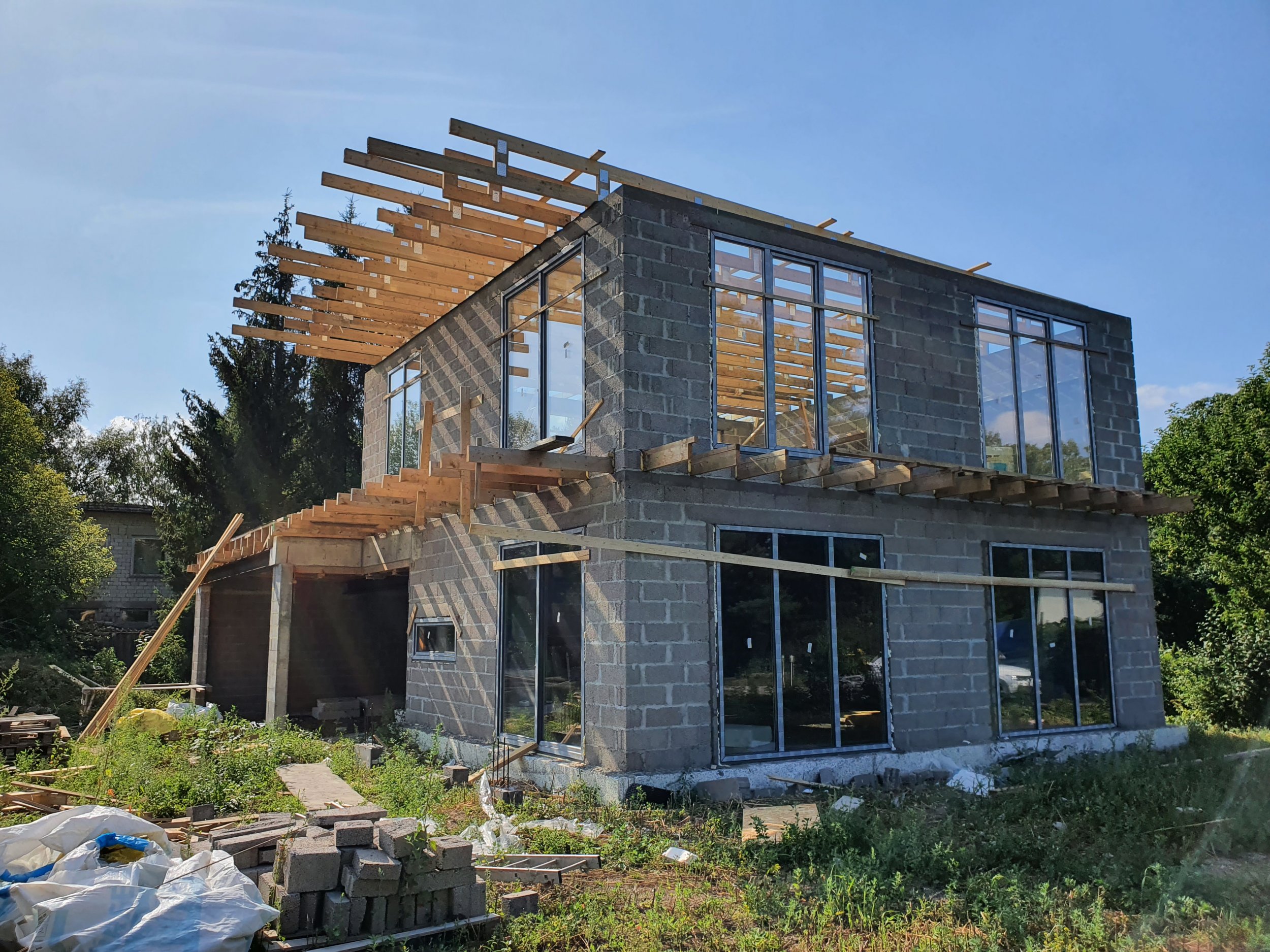 Ehitatava 133 m2 kahekorruselise maja siseviimistlus. Krohvimine koos võrguga. Pahteldamine ja värvimine. Välisseinad Fibost. Siseseinad ja laed tulevad kipsplaadist. Laed kõrgus 260 cm.