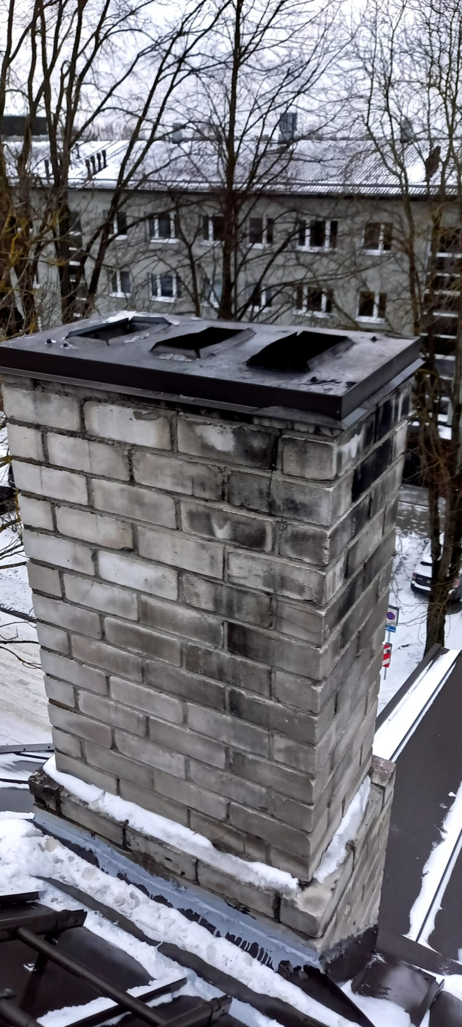 Vaja parandada korstnapitsi ülaosa ühe kuni kahe lõõri ulatuses kolmese lõõriga korstnast, kolmekordse maja katusel.