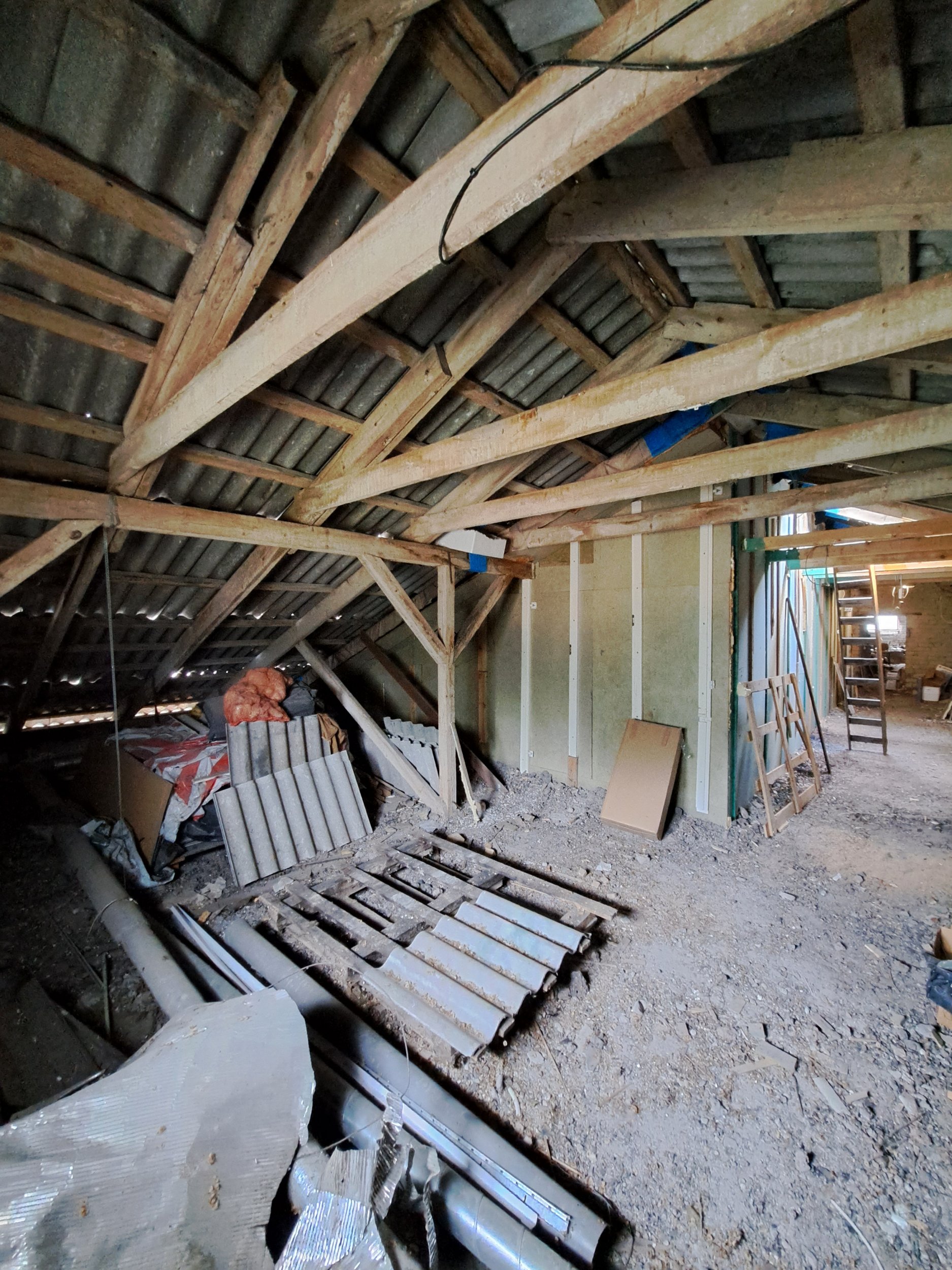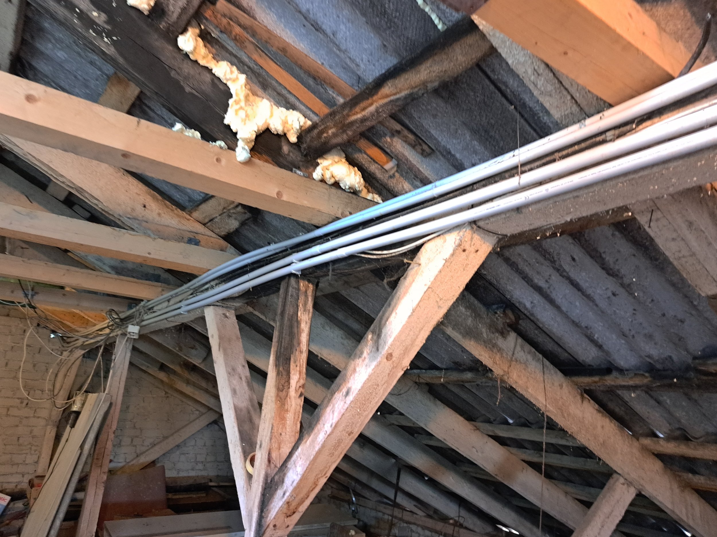 Kahekorruselise korterelamu eterniitkatus vajab väljavahetamist ja soojustamist.