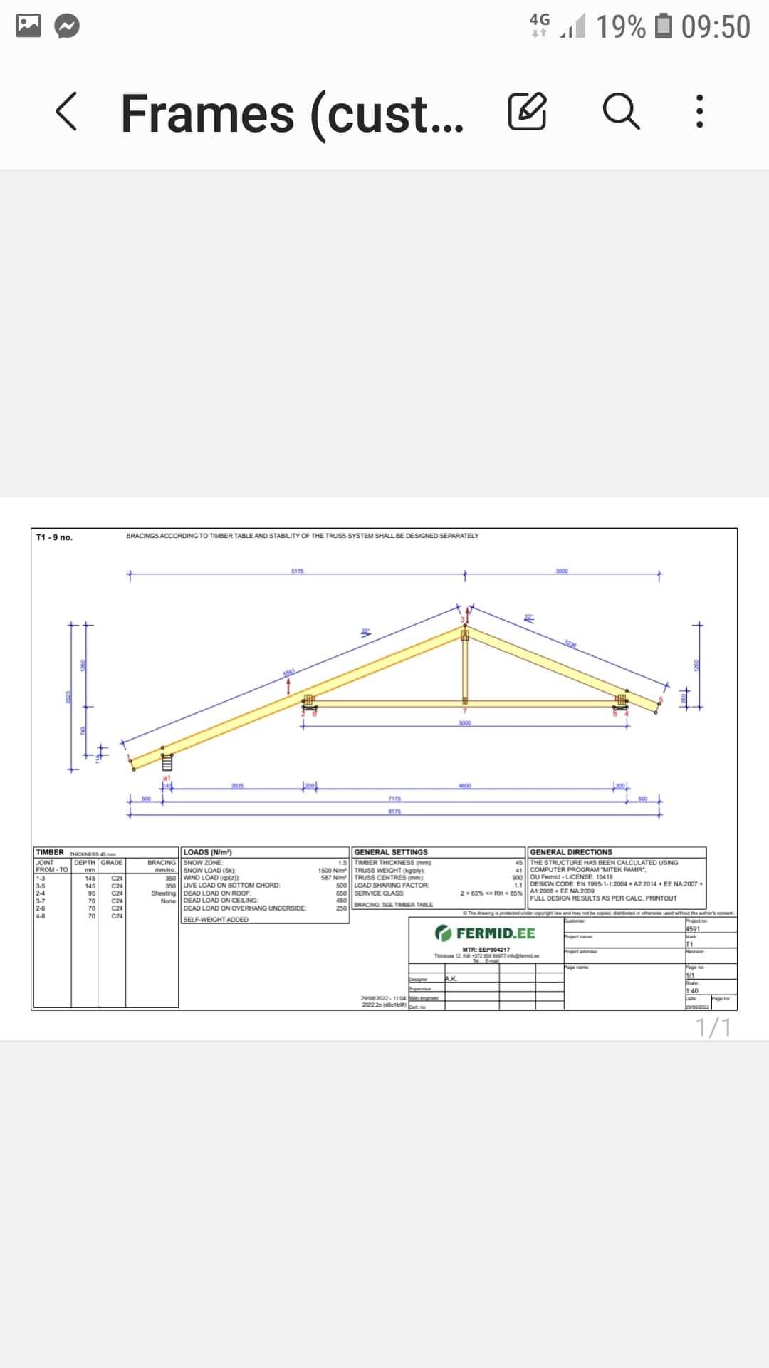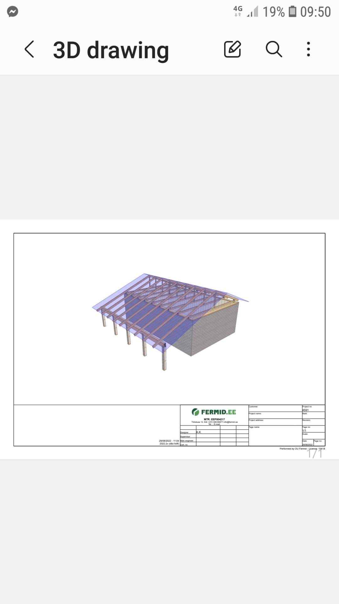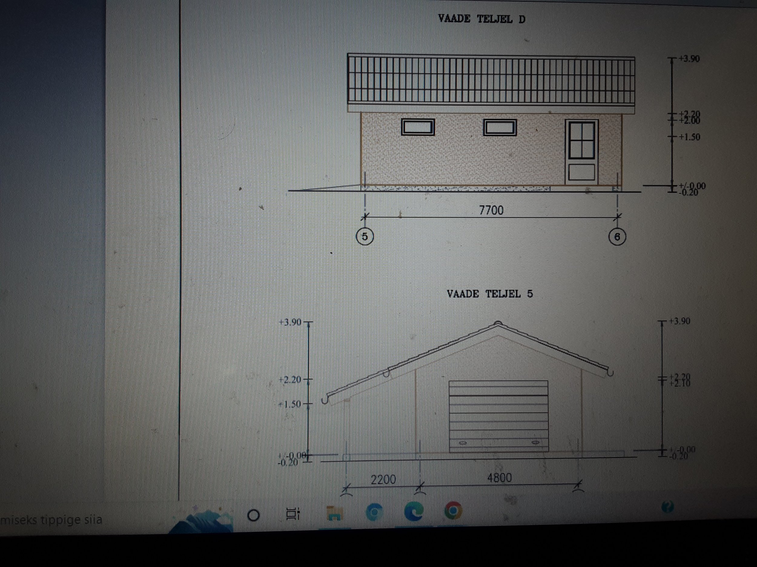 Garaazi müürid on laotud fibo200. Fermid on tellitud. Töö teostajal paigaldada fermid,paigaldada varjualuse postid, paigaldada vajalikud aluskatted, katusekatteks sooviks kiviprofiil plekki. Ehitada otsaviilud ja räästakastid. Materjalid töö teostajalt.