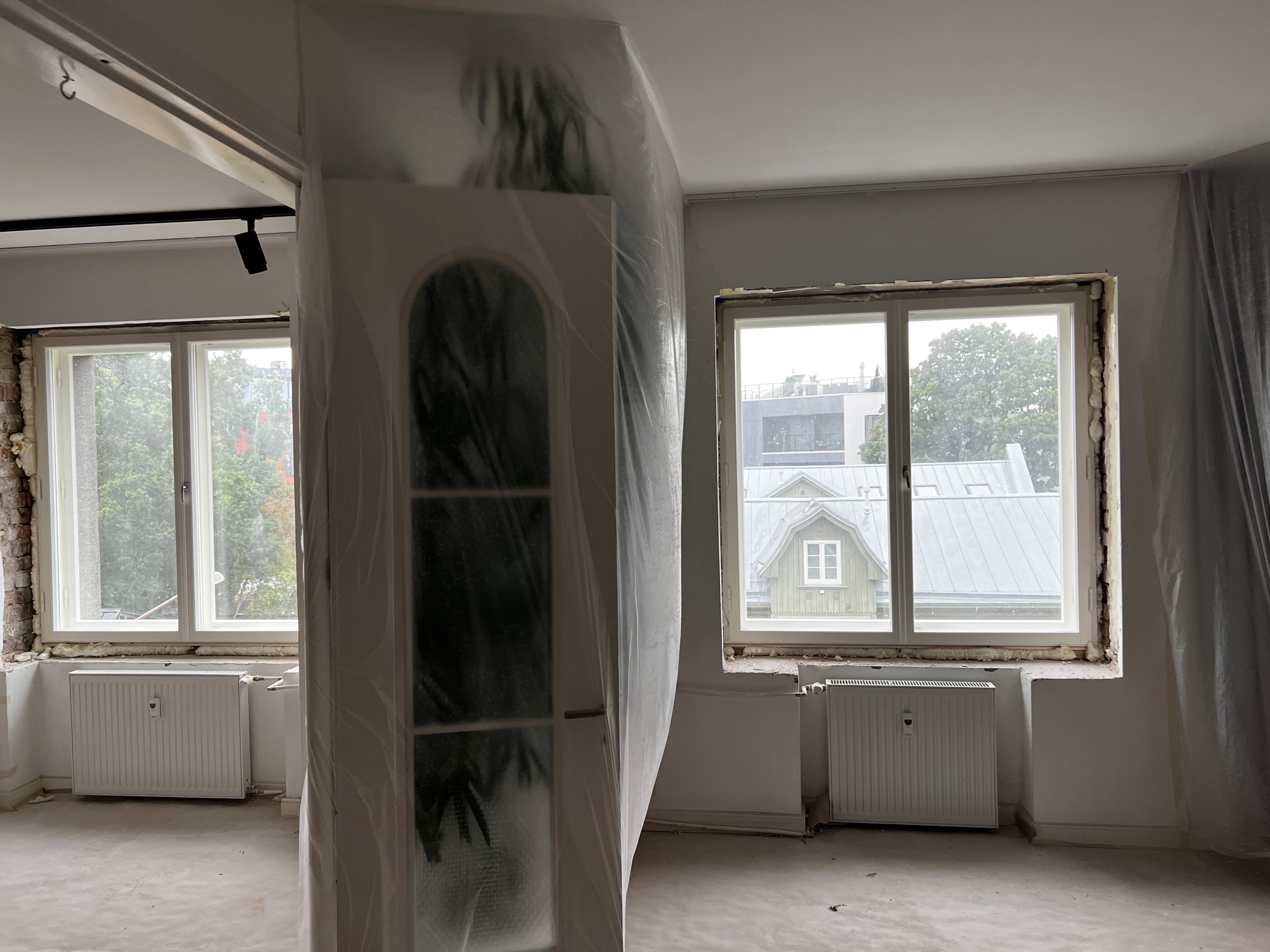 Vana kivimaja vahetatud aknapalede maalritööd (metallist nurgaliistu paigaldus, teipimine, lauspahteldus, krunt + värvimine.