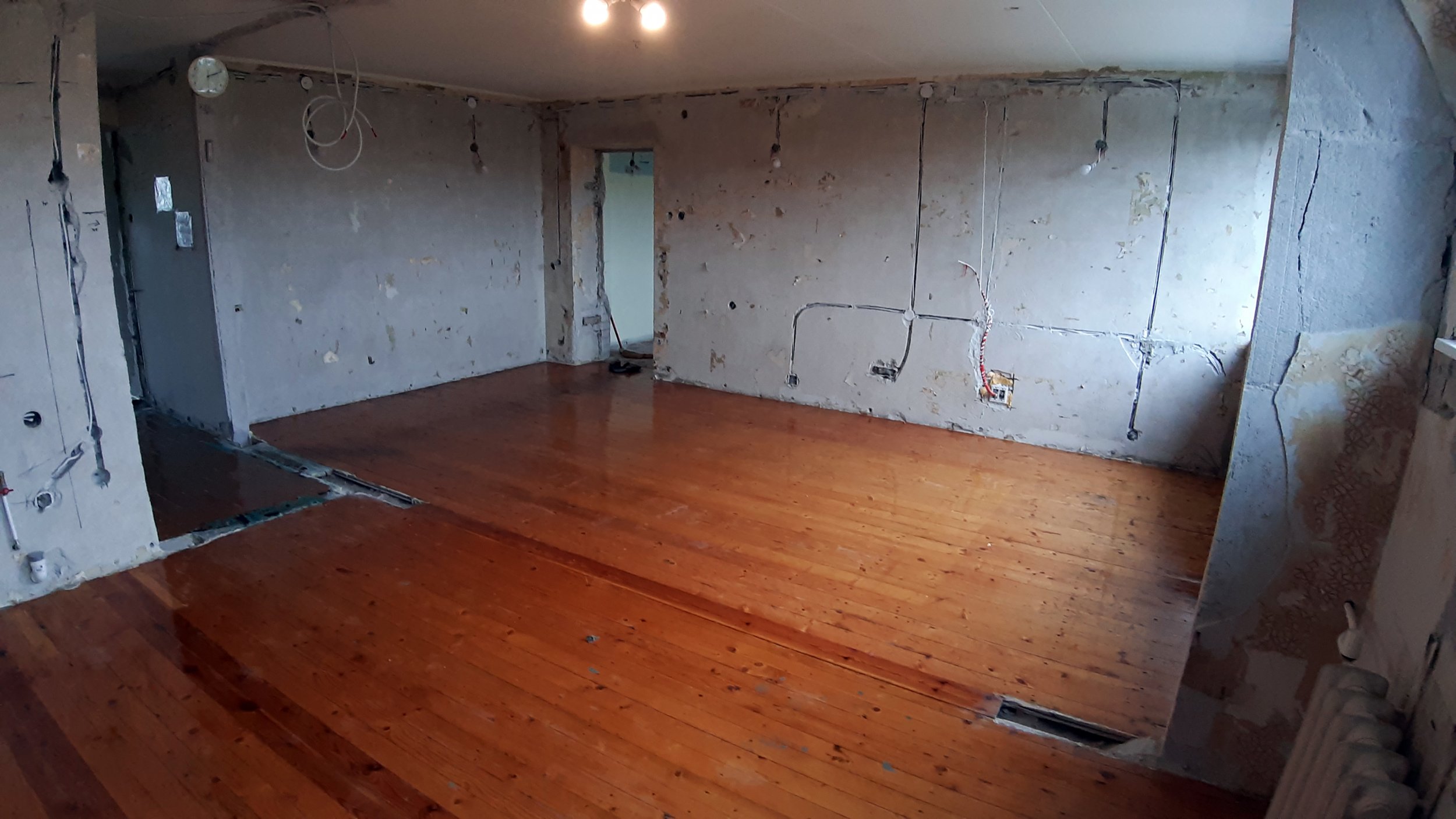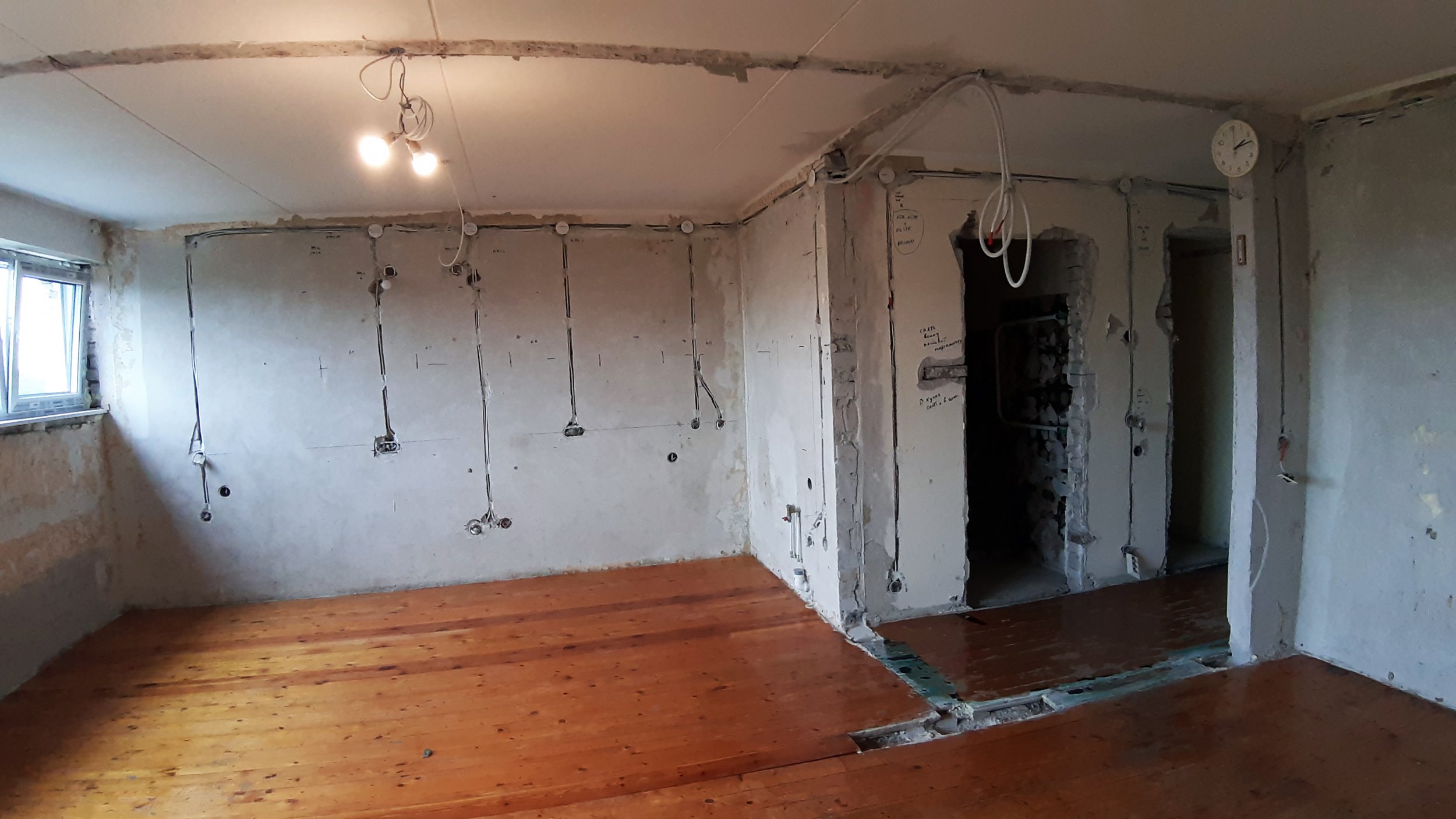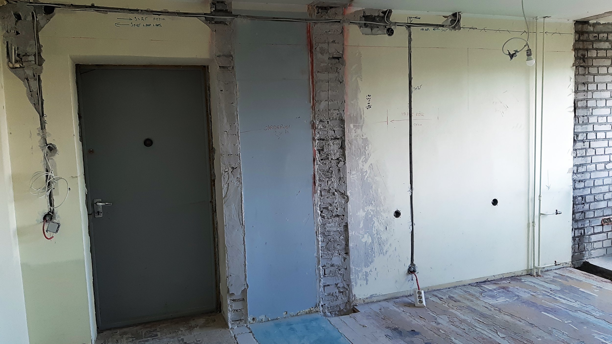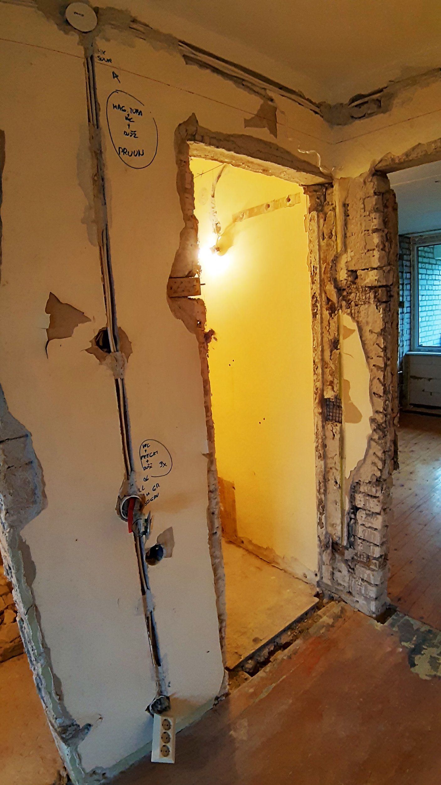 seinte vajalikul määral lammutus ümberplaneeringu tarvis. On eemaldatud vanad põrandakatted