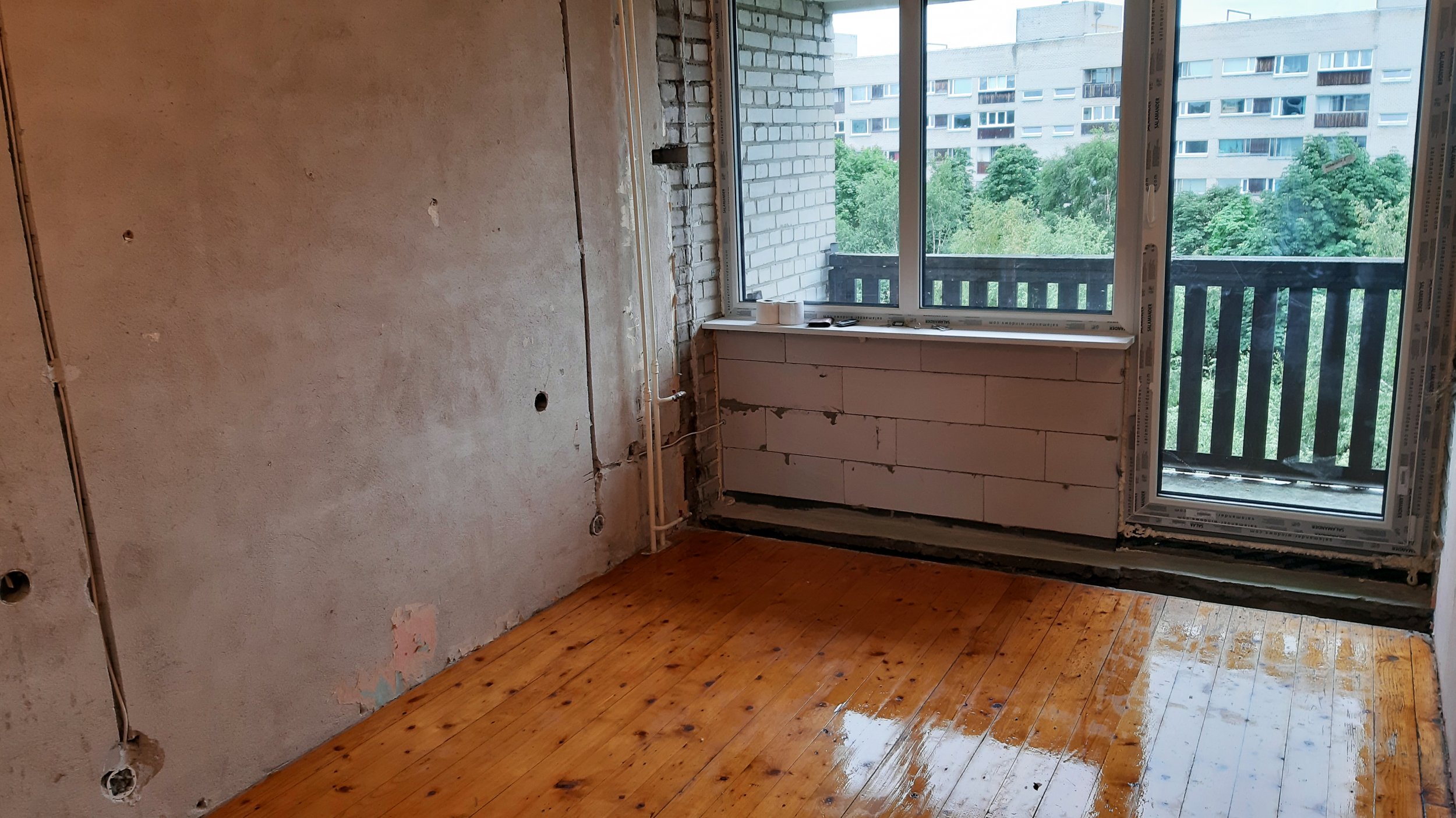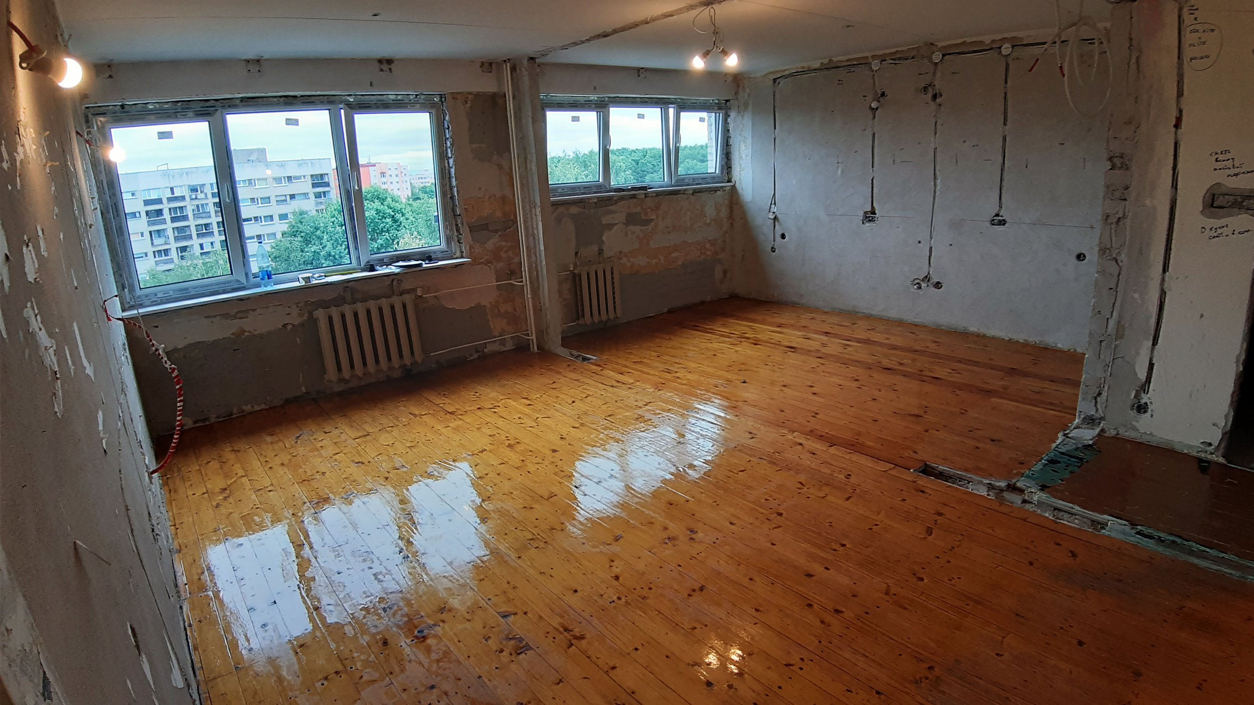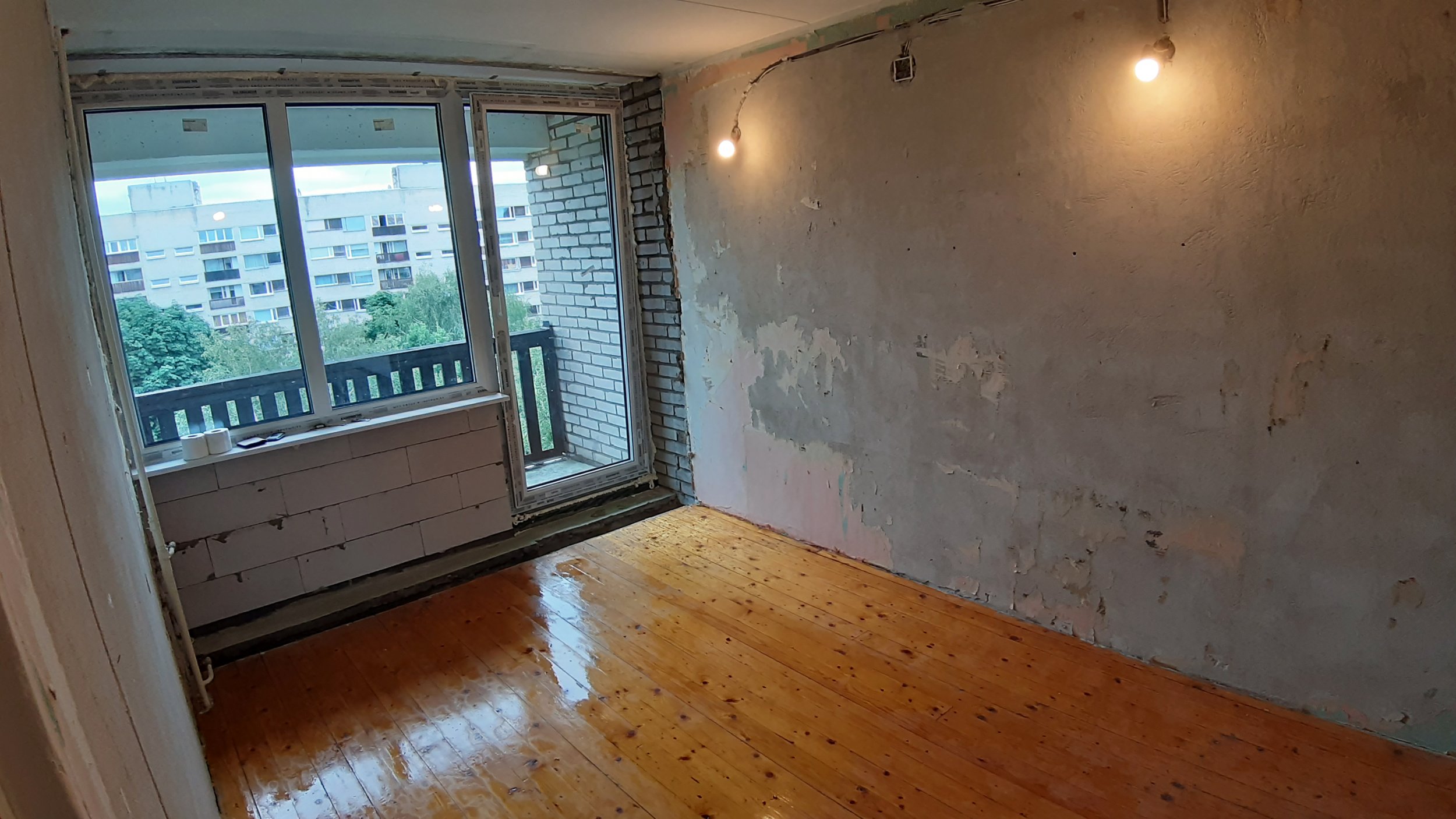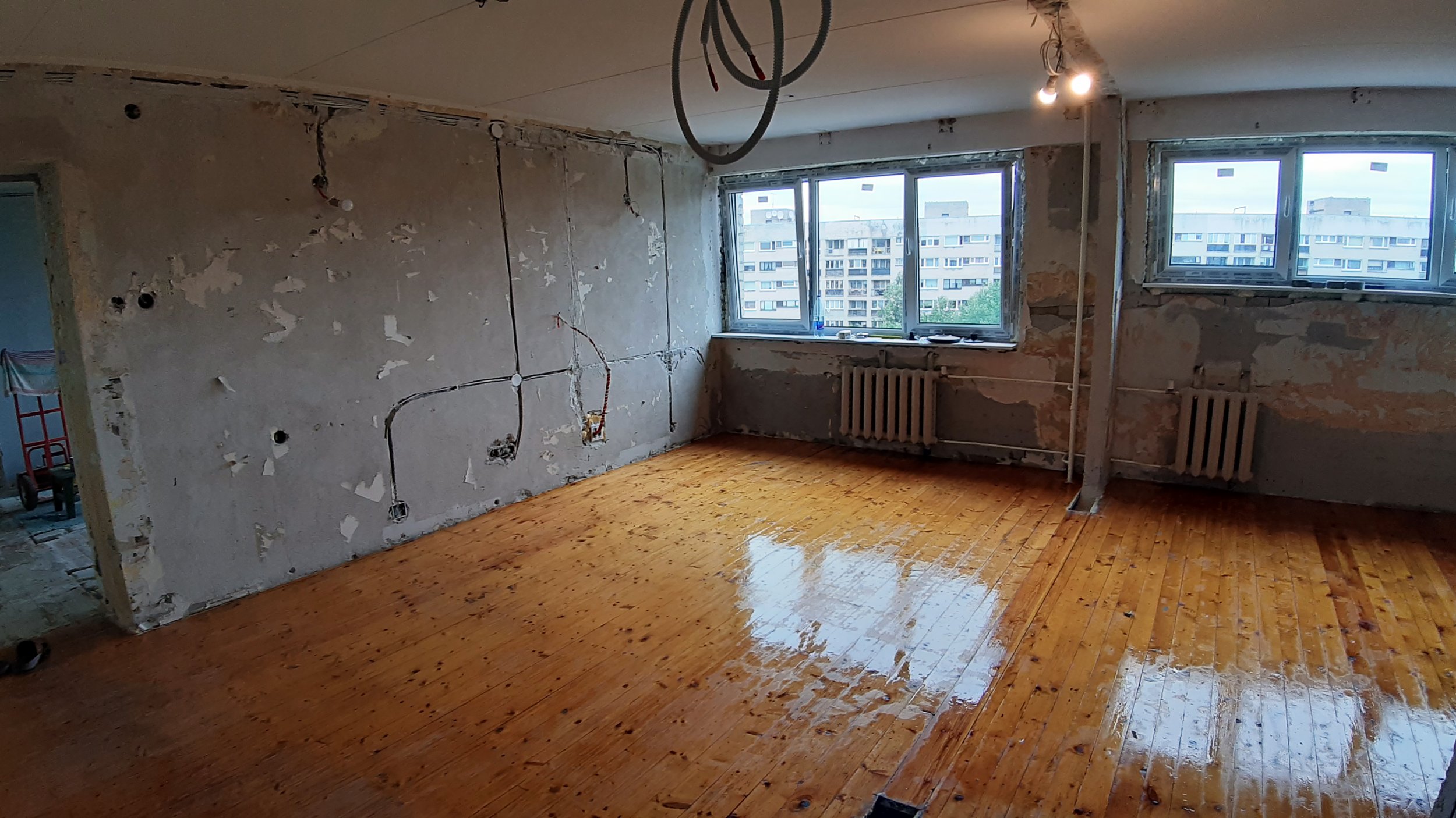 Korter on ette valmistatud ja ehitaja võiks kohe alustada. Kolmes toas on lakitud puitpõrand, millele