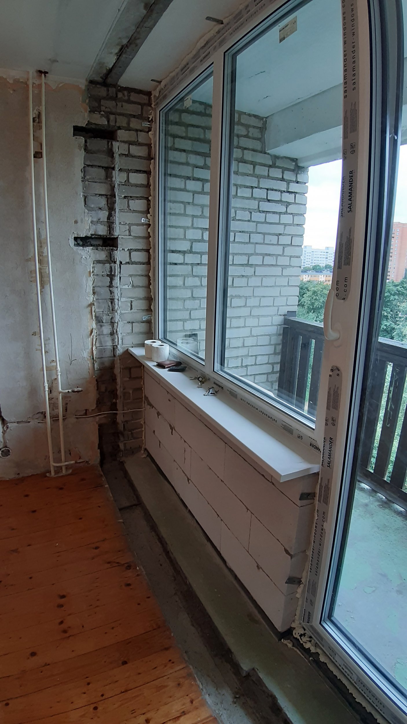 7) Lodža. Fassad seinakatte plaadi paigaldus, Ca 1,4m2. Töö teostuse võimalus sõltub ilmast.