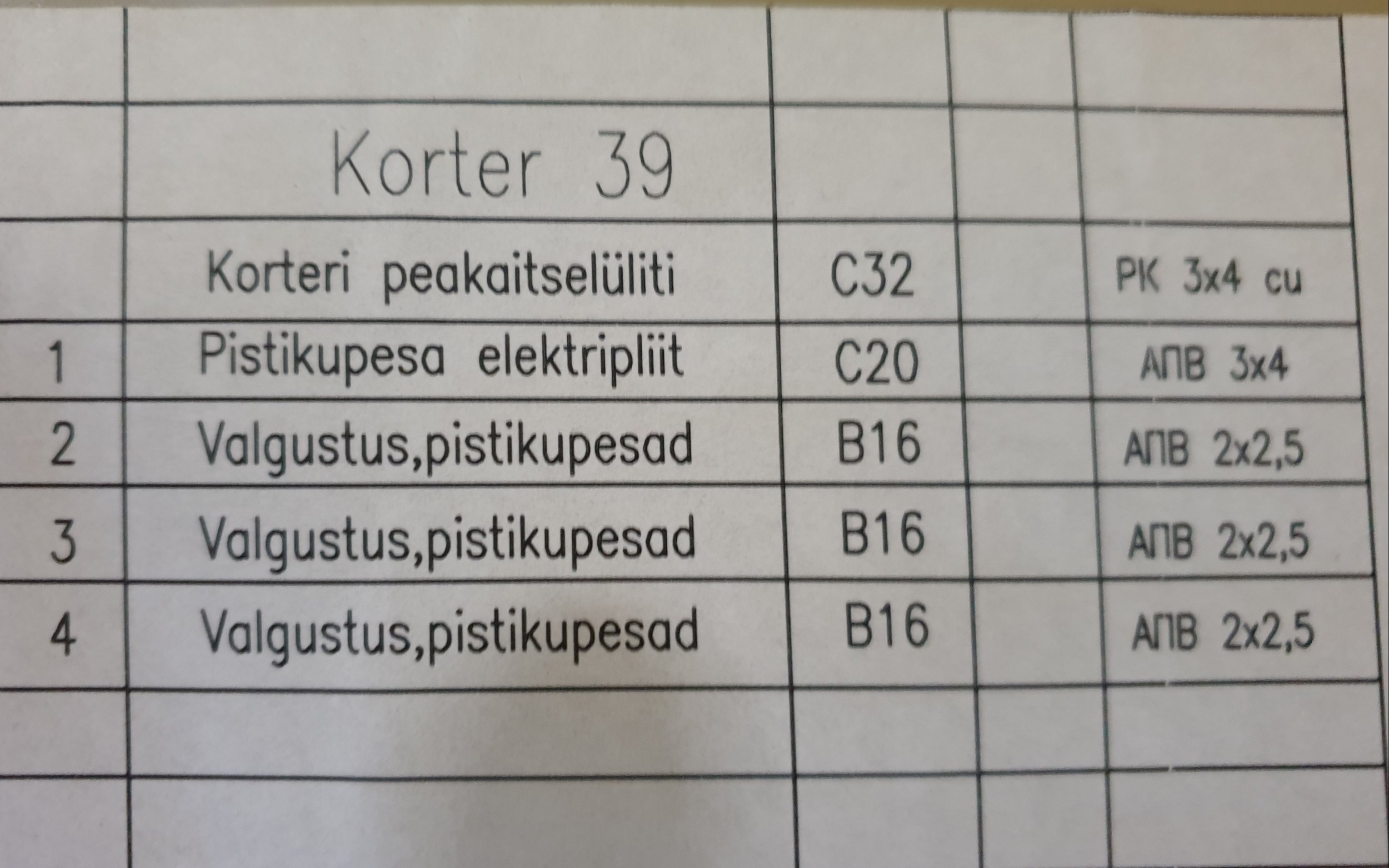 Korter 49.5m². Vaja välja vahetada vana süsteem. Võib elektrijuhtmed vedada põranda alt kuid seina minevad juhtmed peavad saama freesitud betoonseintesse. Vanad kaablid võivad seina jääda kui need ei sega uute paigaldamist.