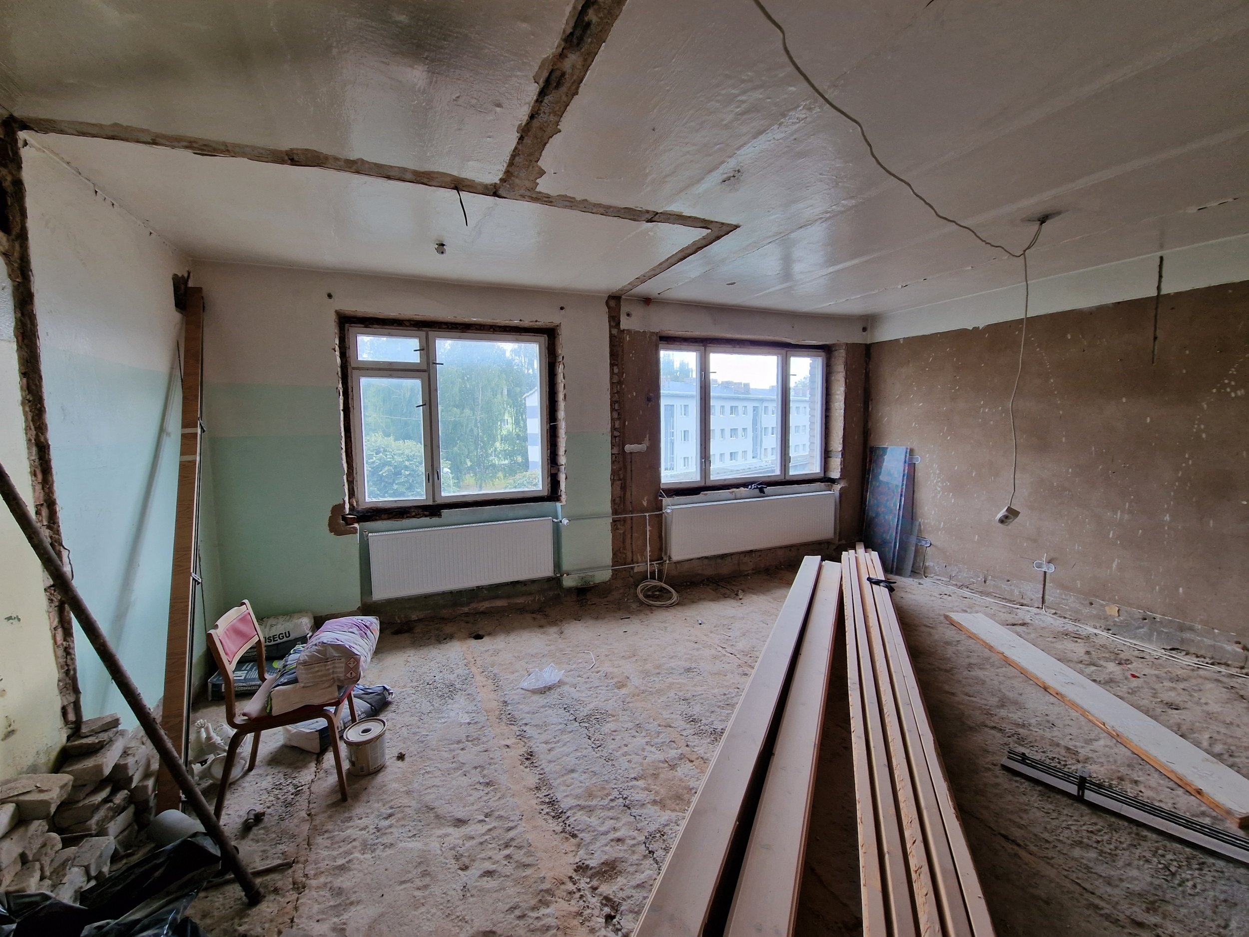 Korterite taastamine, osaliselt veetud juhtmed. Uued radikad, ühes uued aknad, teises vaja panna. Seinad laed ja põrandad vaja taastatada ja osaliselt vahesin. Välisuksed vaja vahetada jne. Üks korter ca 25m2 ja korterid asuvad Valga kesklinnas samas trepikojas. Lammutustööd enamjaolt tehtud. Üks korter täiesti puhas, teine lammutustööd käivad. Piltidelt näha.
