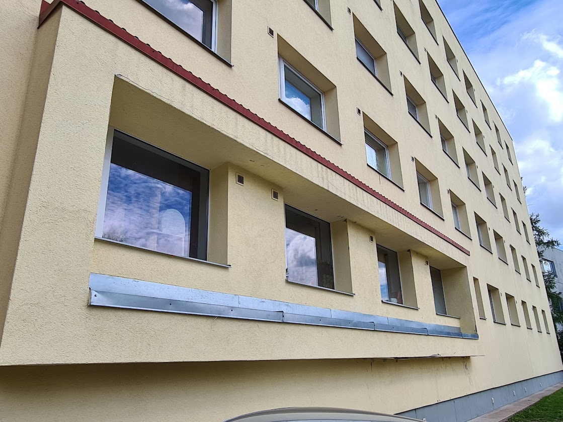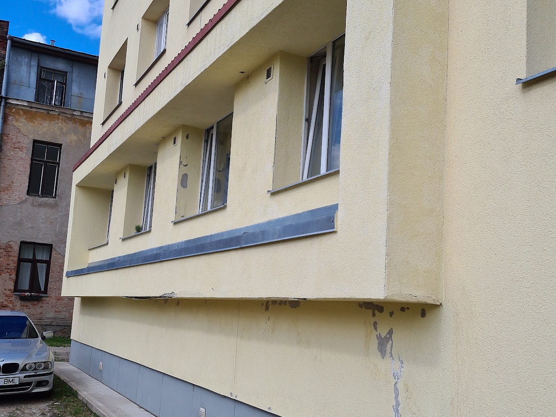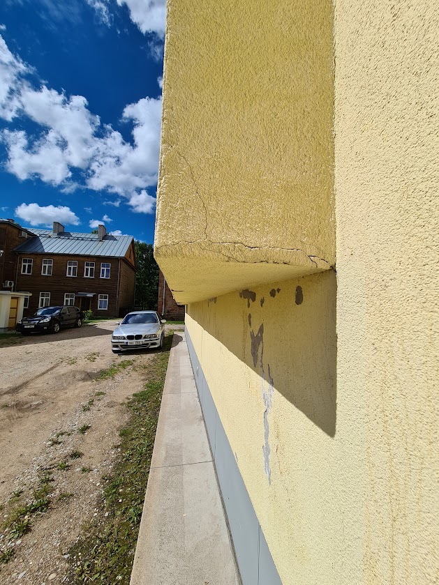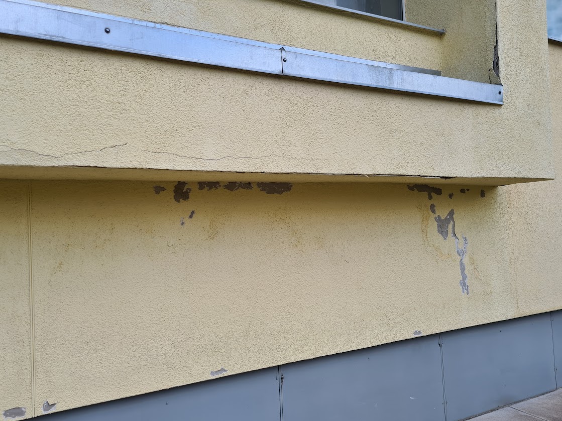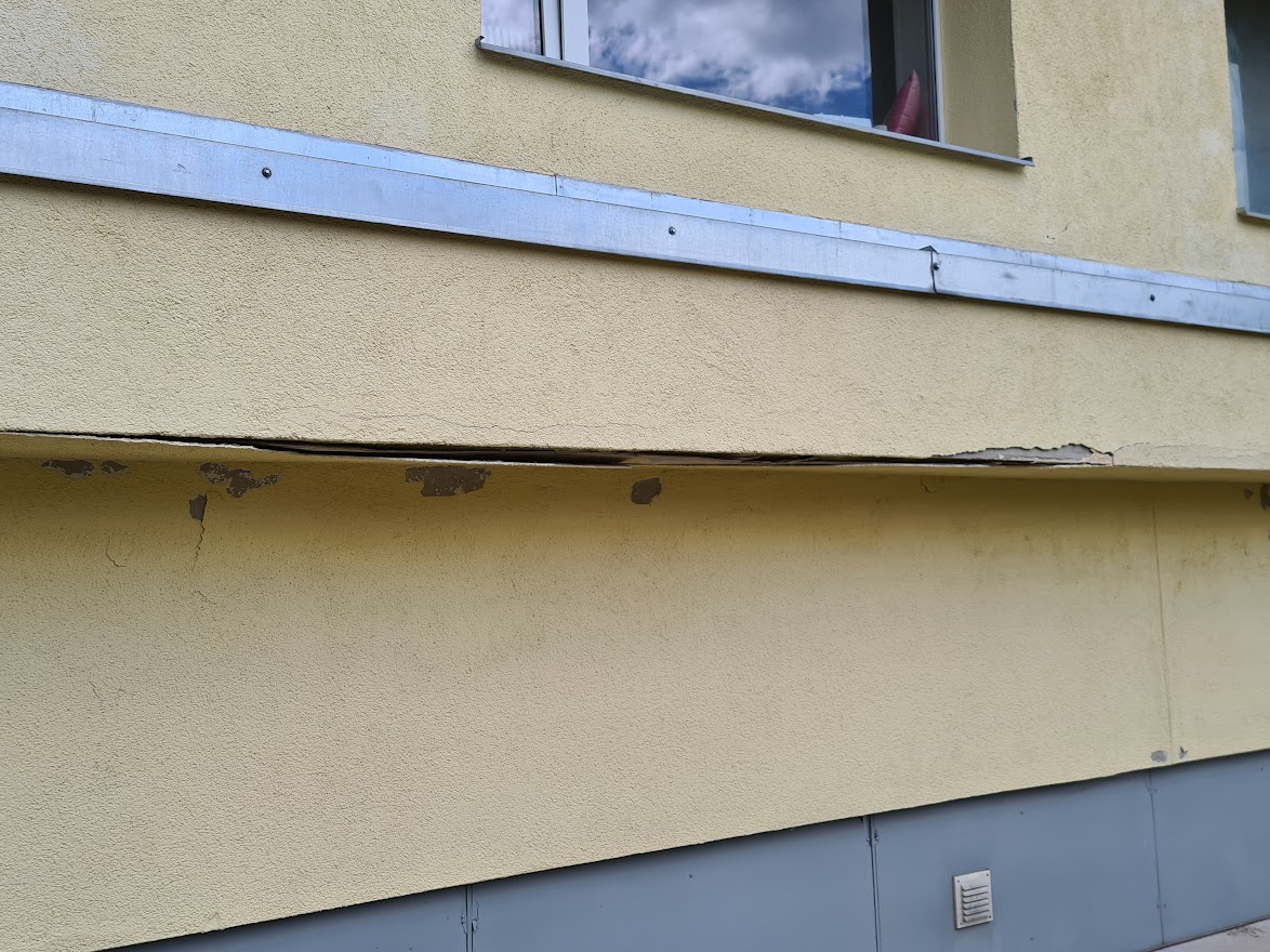 Kortermaja alumisel korrusel on väljaulatuva eendiga osa, mis on kusagilt niiskust saanud ja seal on tekkinud mitmed krohvikahjustused. Lahtine krohv tuleb eemaldada ja uuesti krohvida ning värvida. Üles tuleks leida niiskuse kogunemise põhjus ja vastavad kohad hermetiseerida.