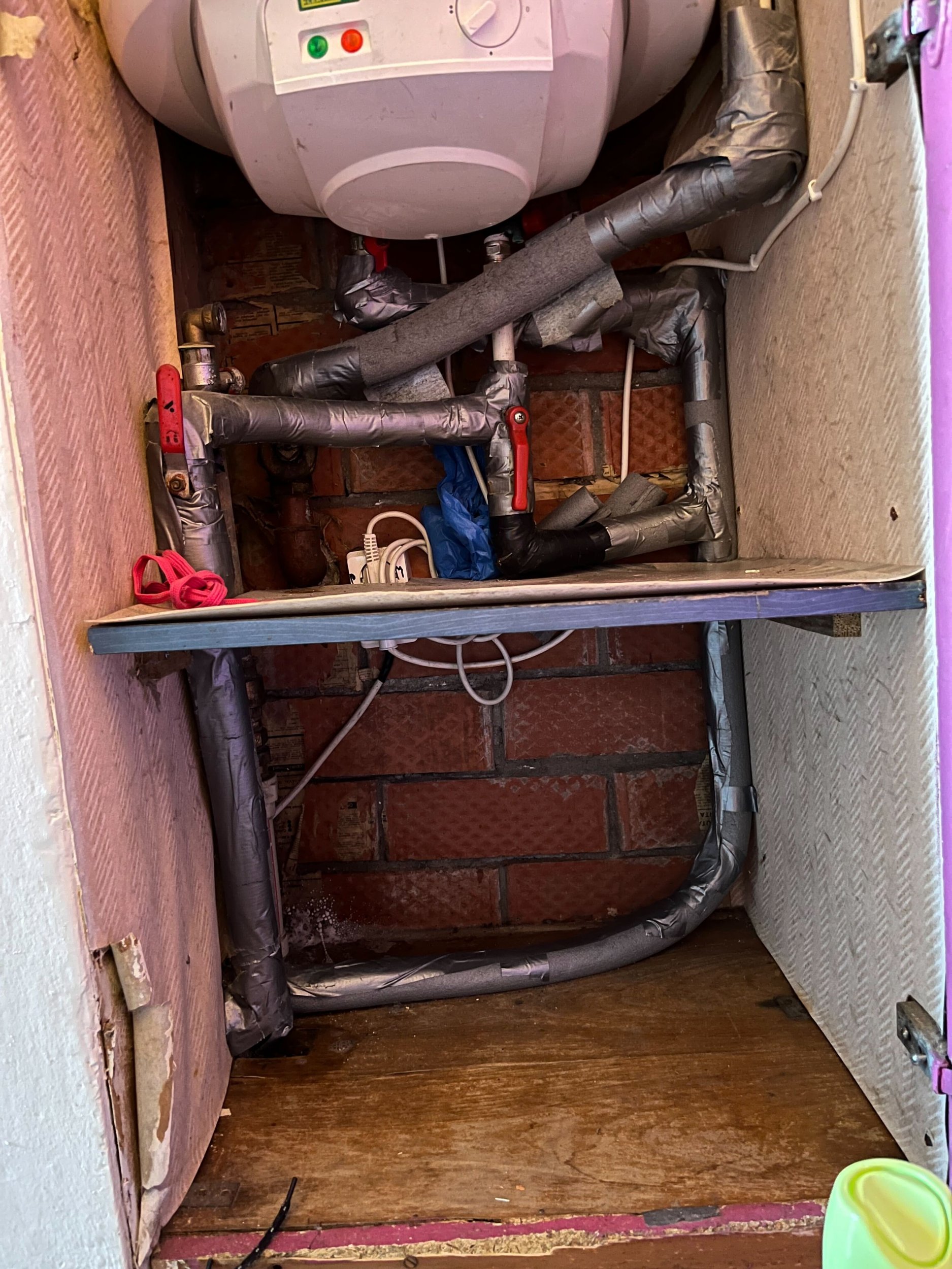 Varasemalt oli lahtine süsteem (nõukaaegne) koos paisupaagiga , kuid nüüd on vahetatud kinniseks süsteemiks, mis ei toimi õigesti. Seega on soov ehitada see ümber.