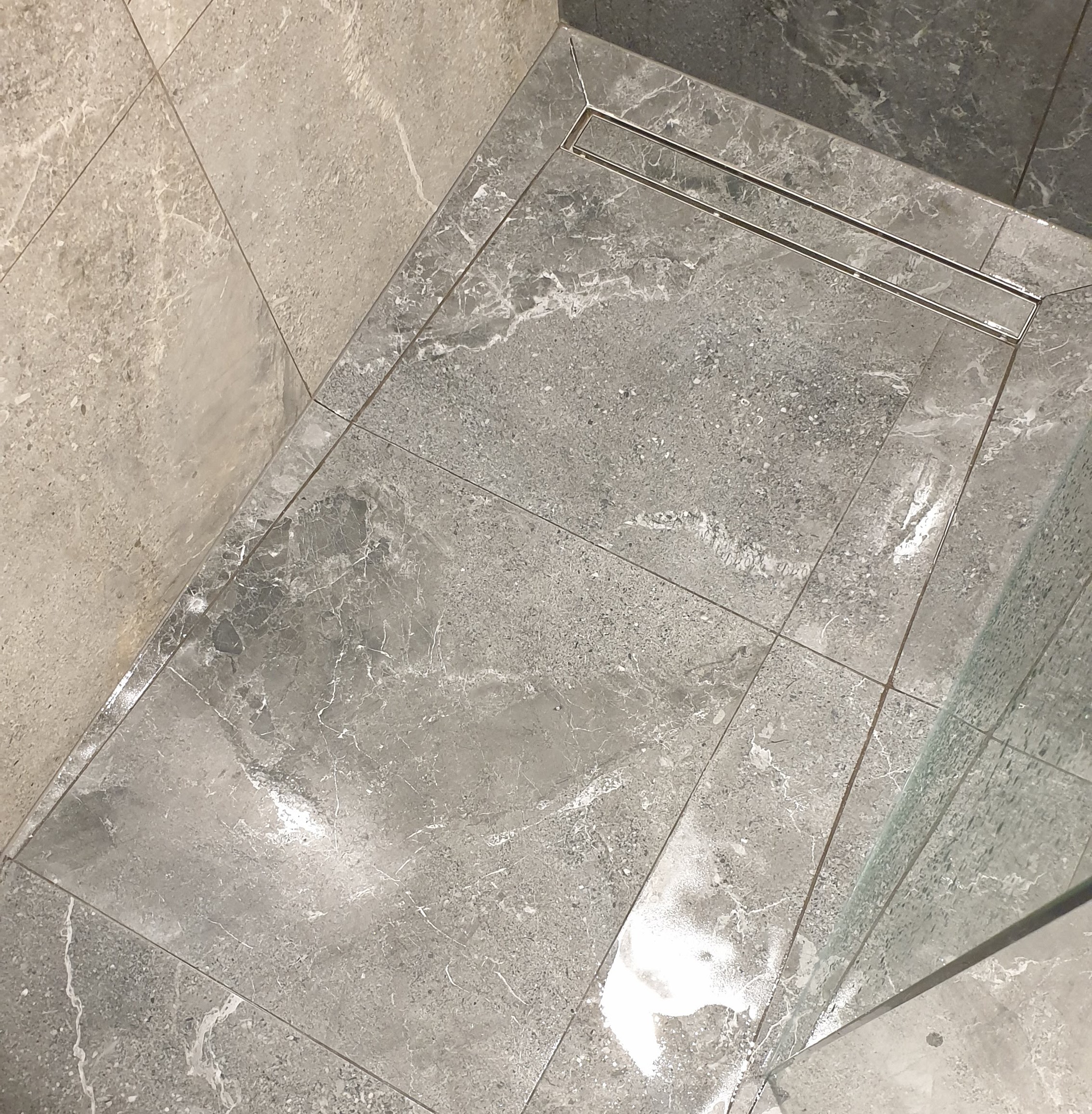 Vannitoas dušši trapp on piklik kandiline. Põranda plaadid on suured, seega on soov teha kalle sellise lahendusega nagu on pildil.