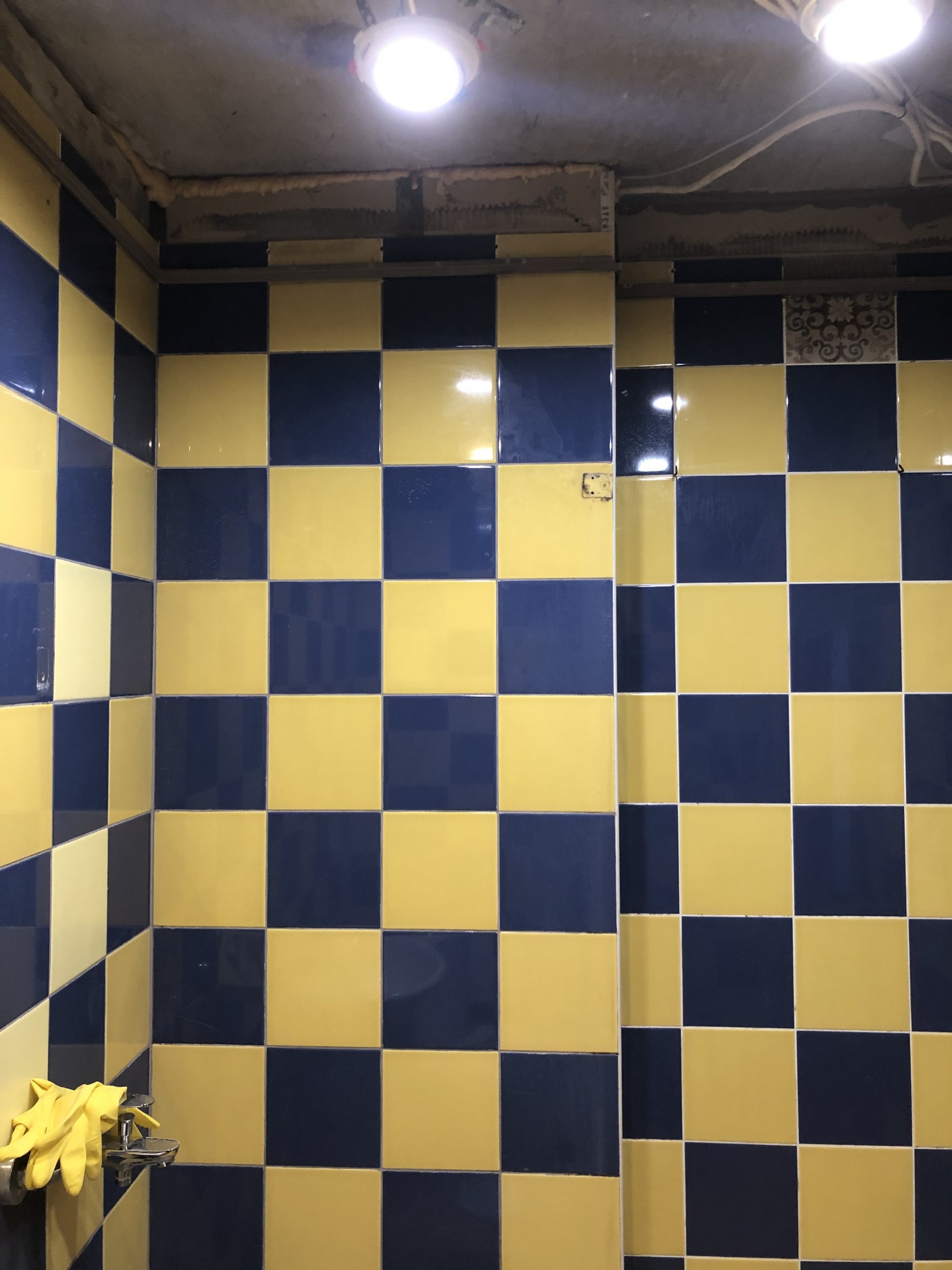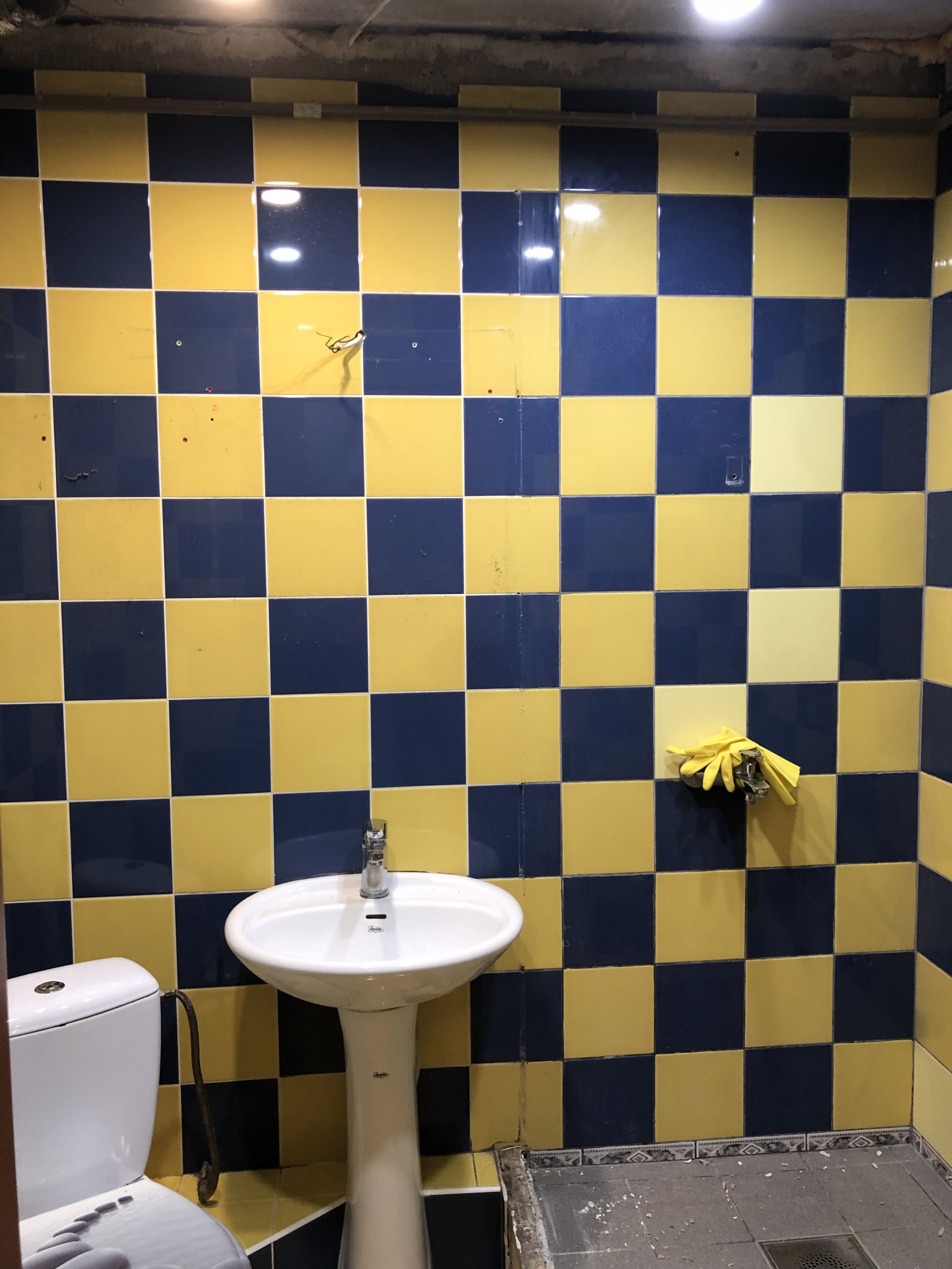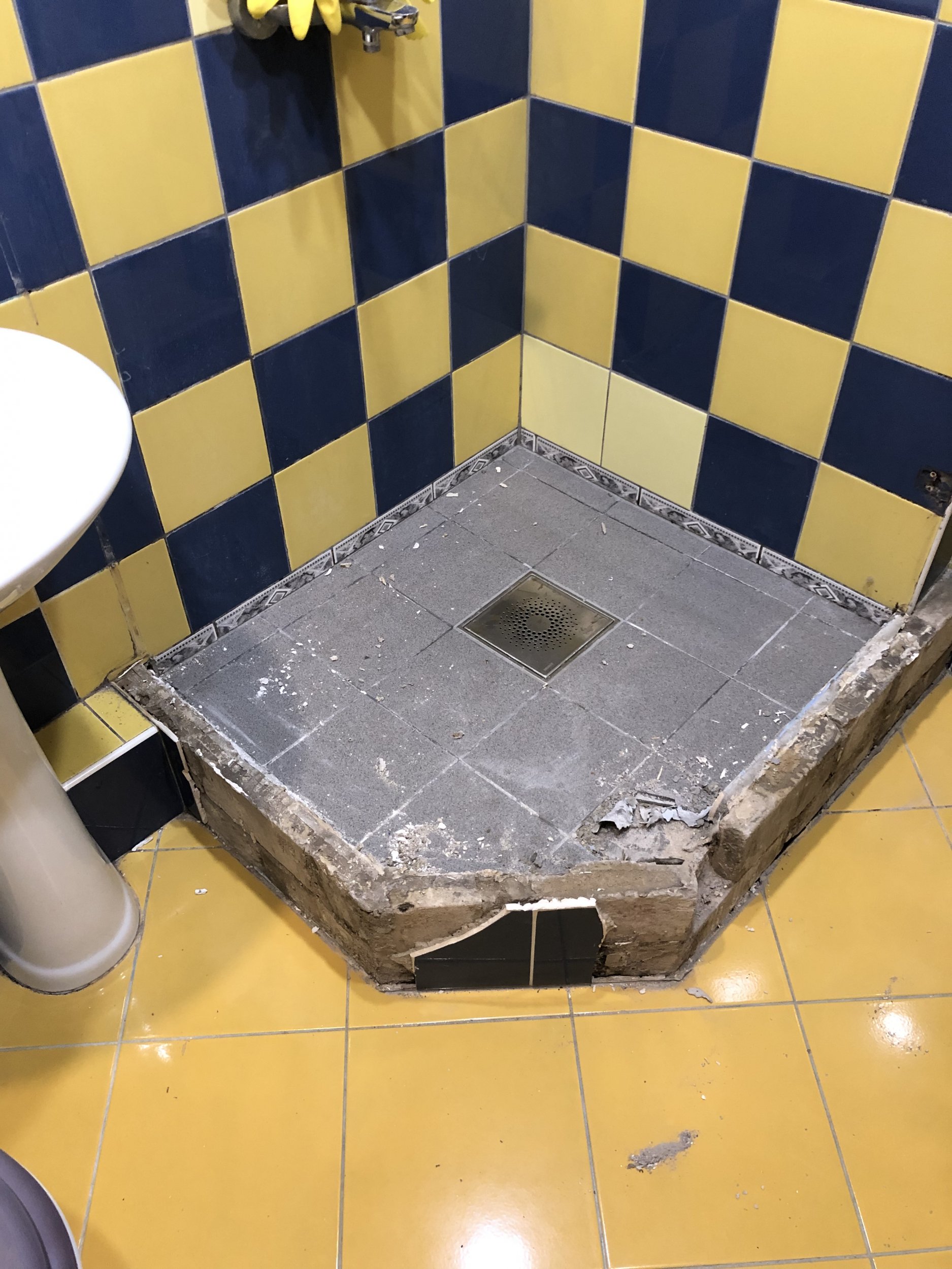 Põranda plaadid üles võtta koos dušinurga aluse lõhkumisega (ilmselt on tsemedisegust valatud)
