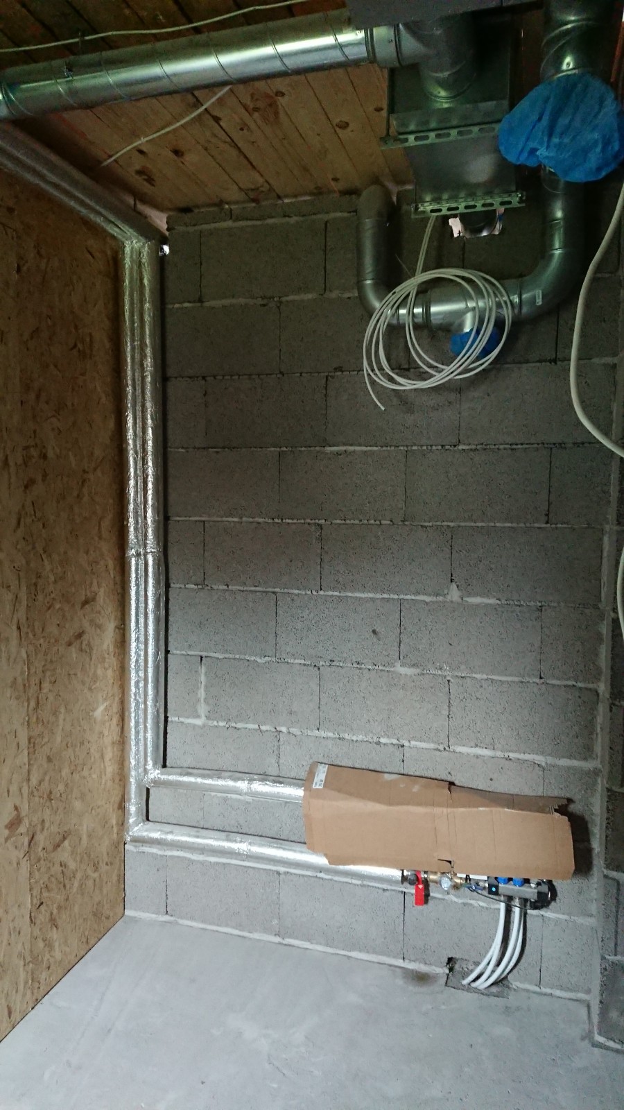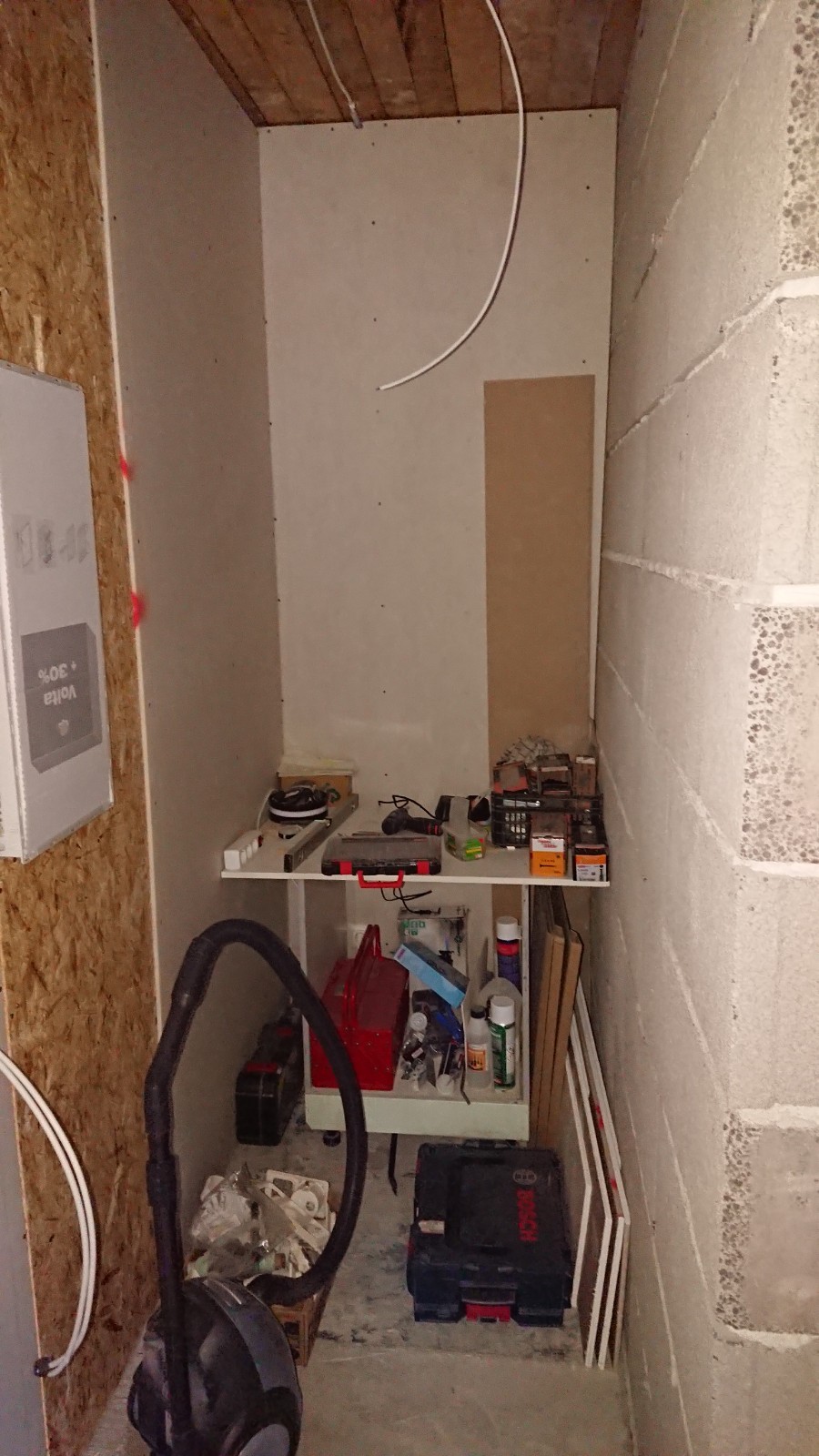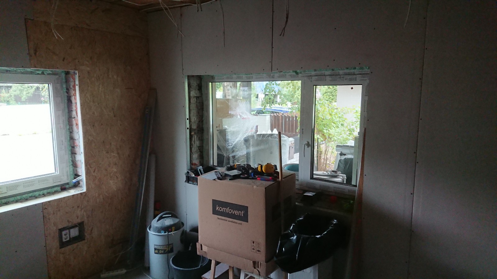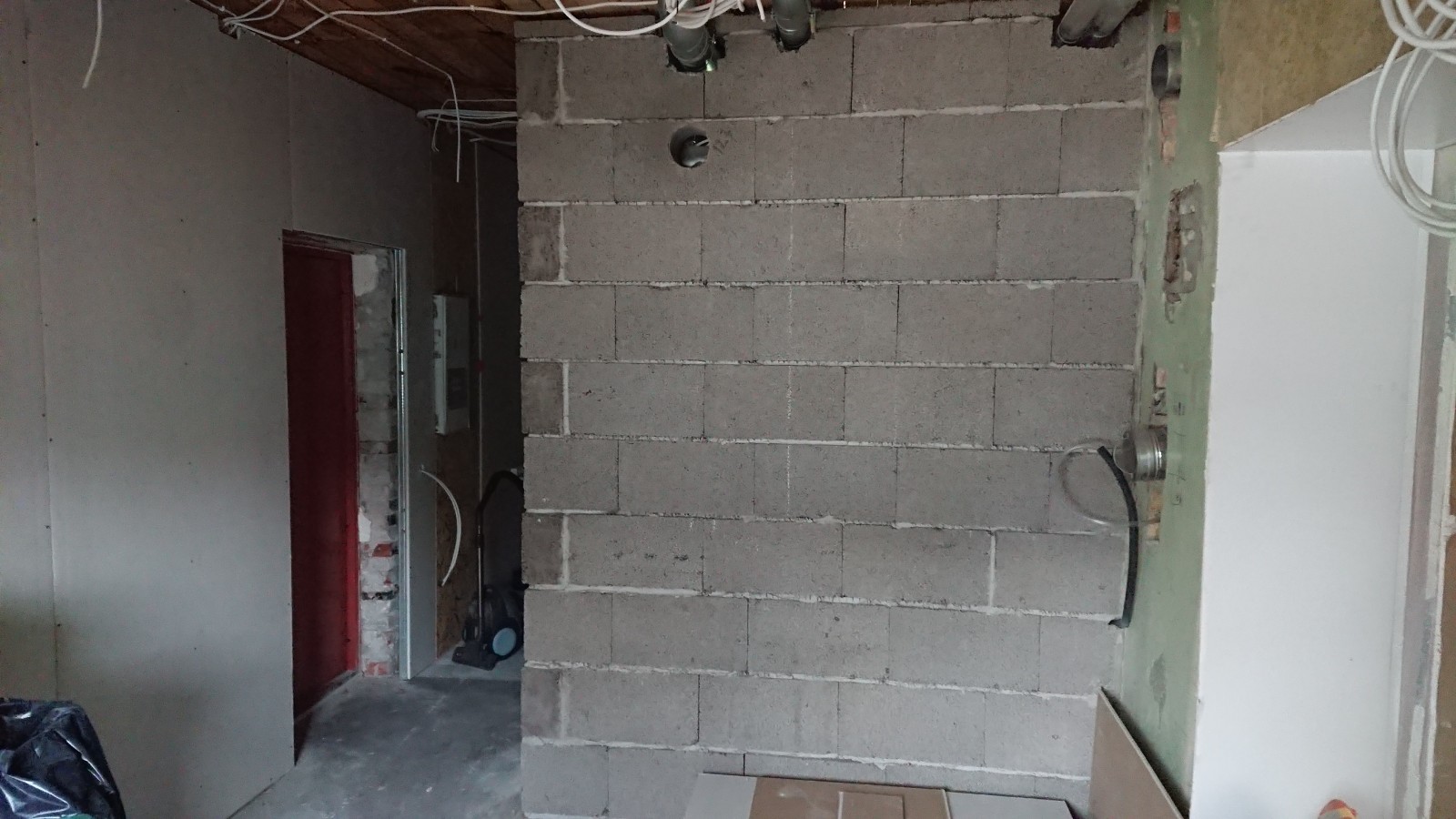 Oleks vaja pahteldada ja värvida kipsseinad (~45 m2) ja kipslagi (~21 m2) ning krohvida ja värvida fiboseinad (~30 m2) ja vana telliskivisein (~10 m2). Sinna juurde siis ka akna- ja uksepõsed. Telliskivisein on juba kaetud krohviga ja mulle tundub, et see püsib hästi seinas, seega seal on krohvimist parasjagu niipalju kui on vaja lahtiste osade täitmiseks ja ebatasasuste silumiseks.