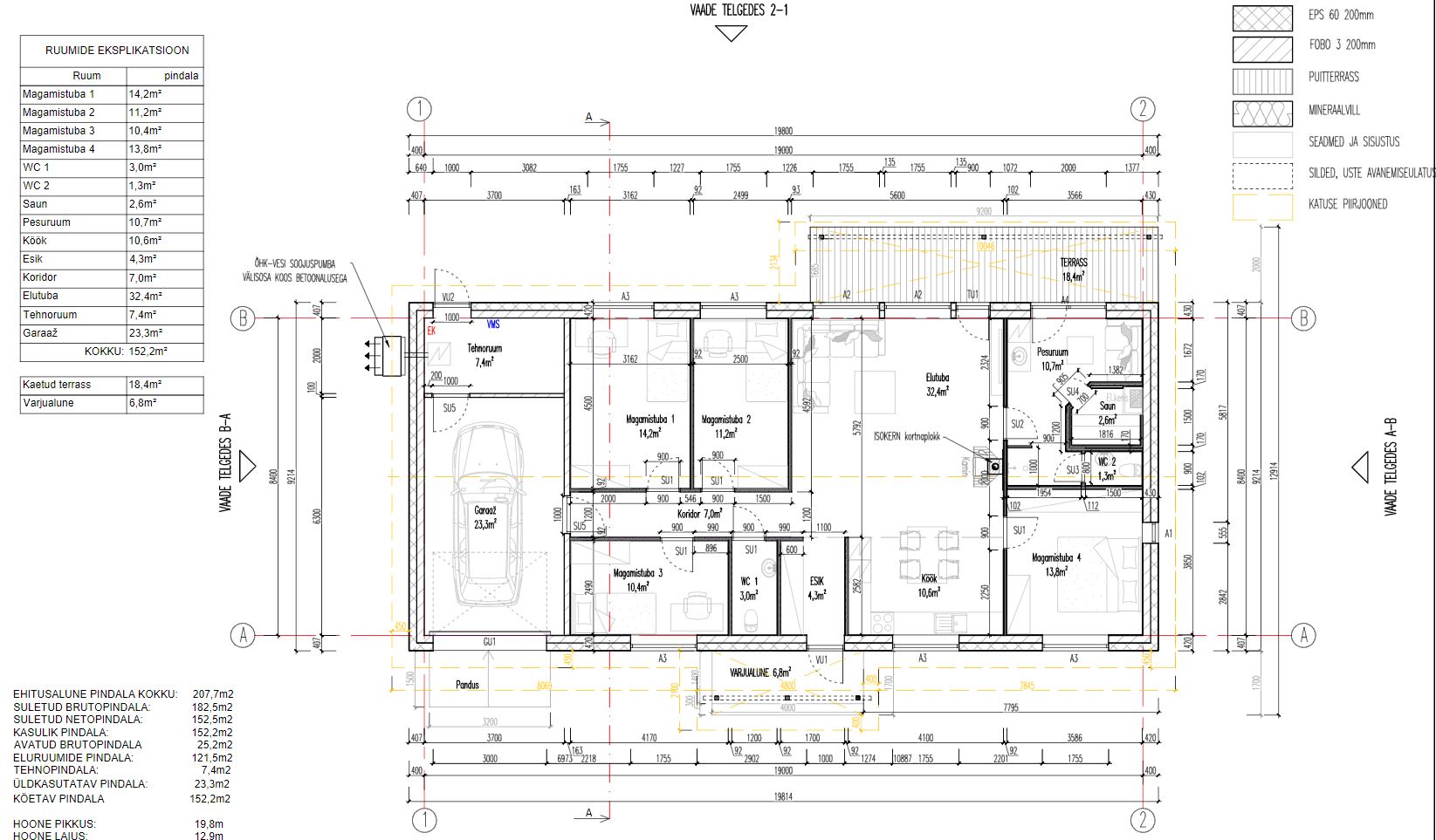 - maja taha planeeritud terrass, mida ei ole tarvis kohe välja ehitada