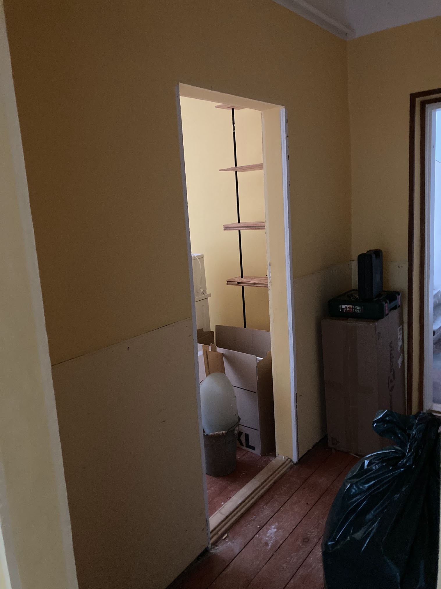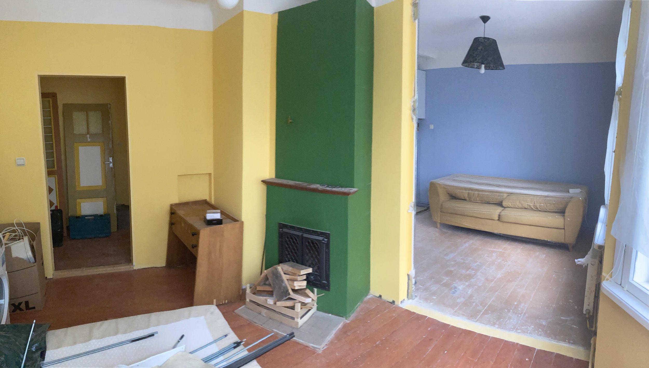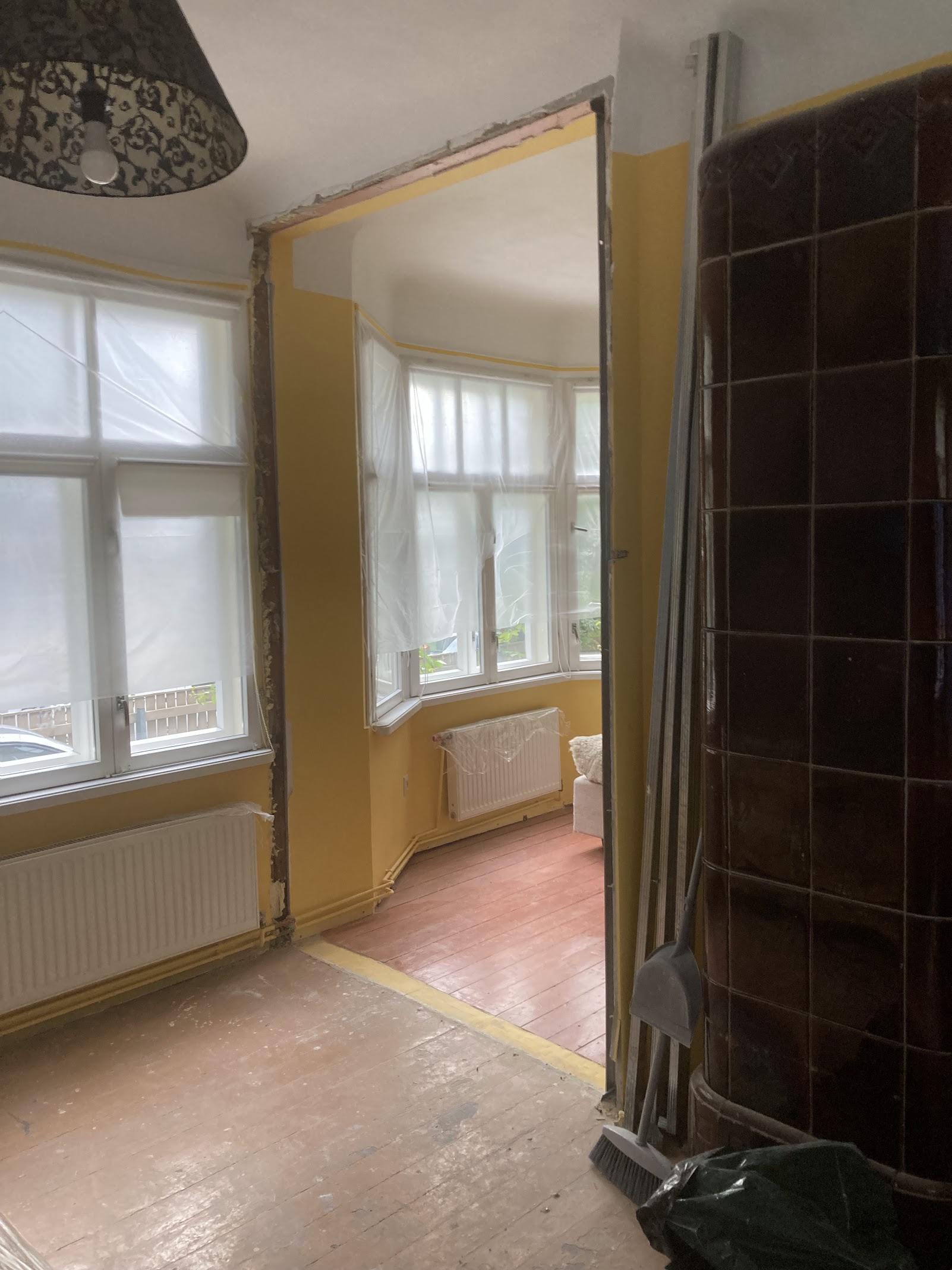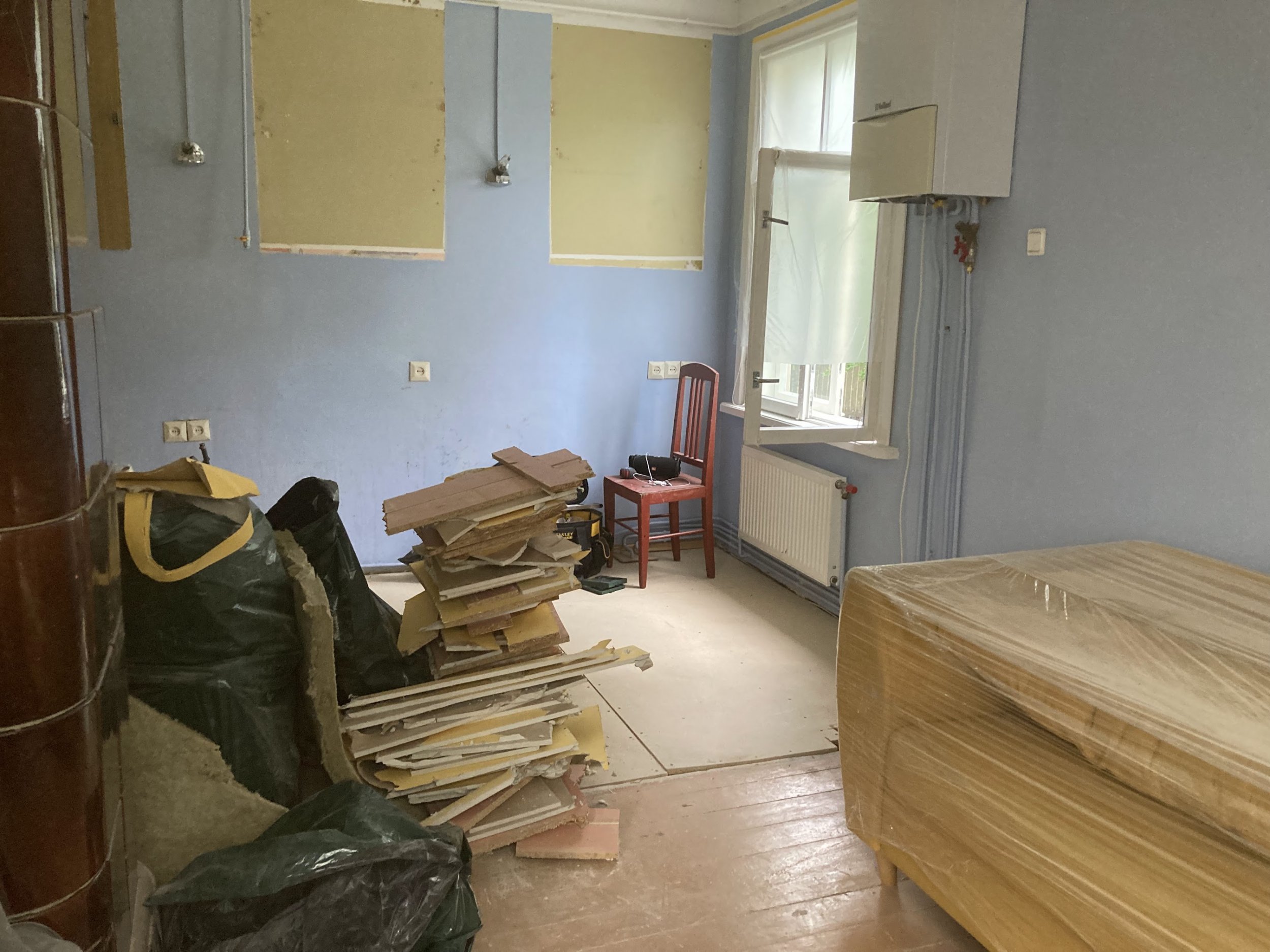 Korter on tühi (kogu mööbel ja sodi tööde teostamiseks ajaks ära viidud) ning üks vahesein juba maha võetud.