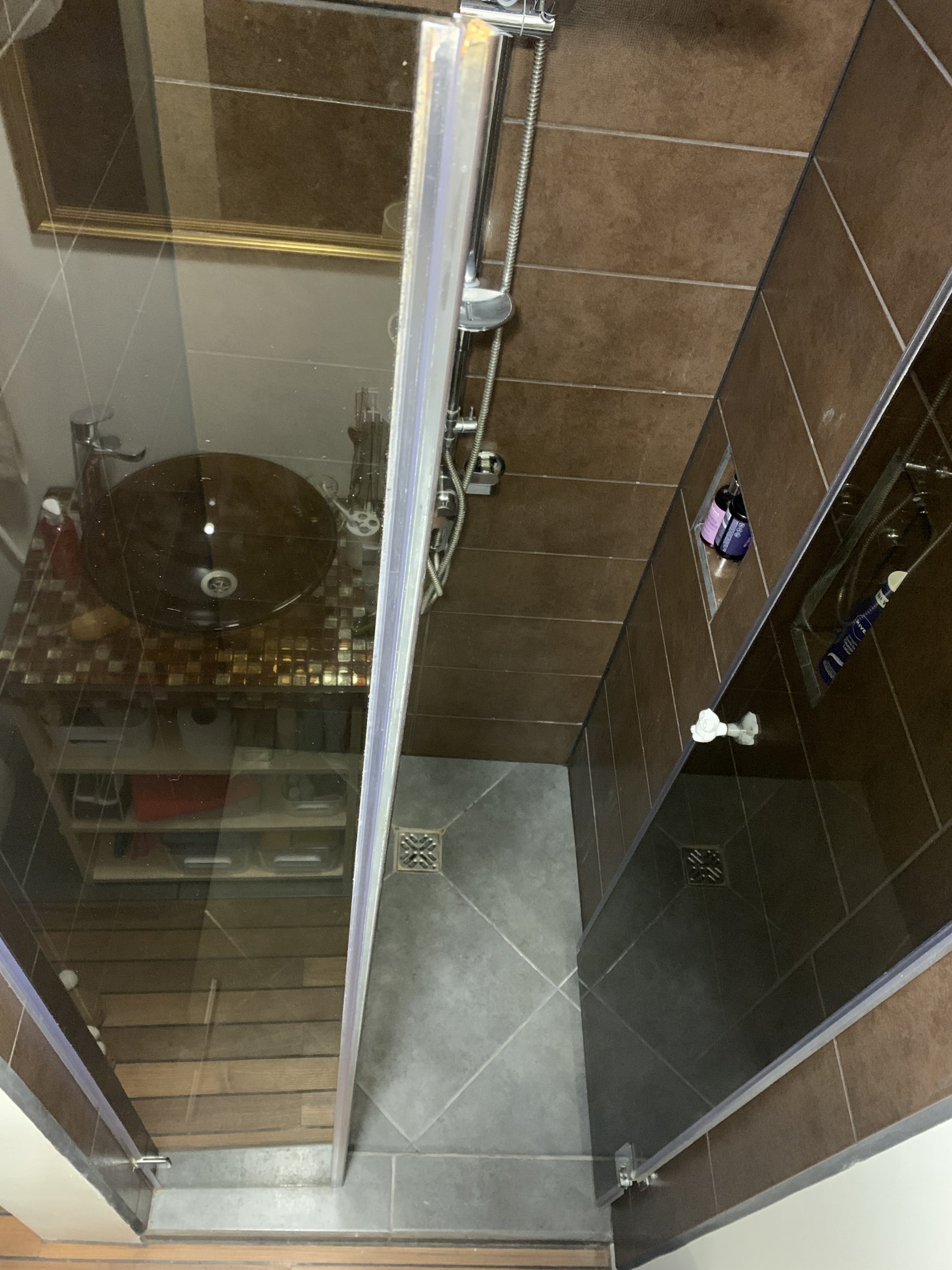 Oleks vaja ära vahetada dušinurga trapp. Torumehe sõnul tuleb ka põrand üles võtta. Plaaditud osa on umbes 1x1m. Pärast trapi remonti tuleks ka põrand uuesti korda teha. Samuti oleks üle vaja vaadata ka WC pott, tõenäoliselt on ka seda vaja vahetada/parandada.