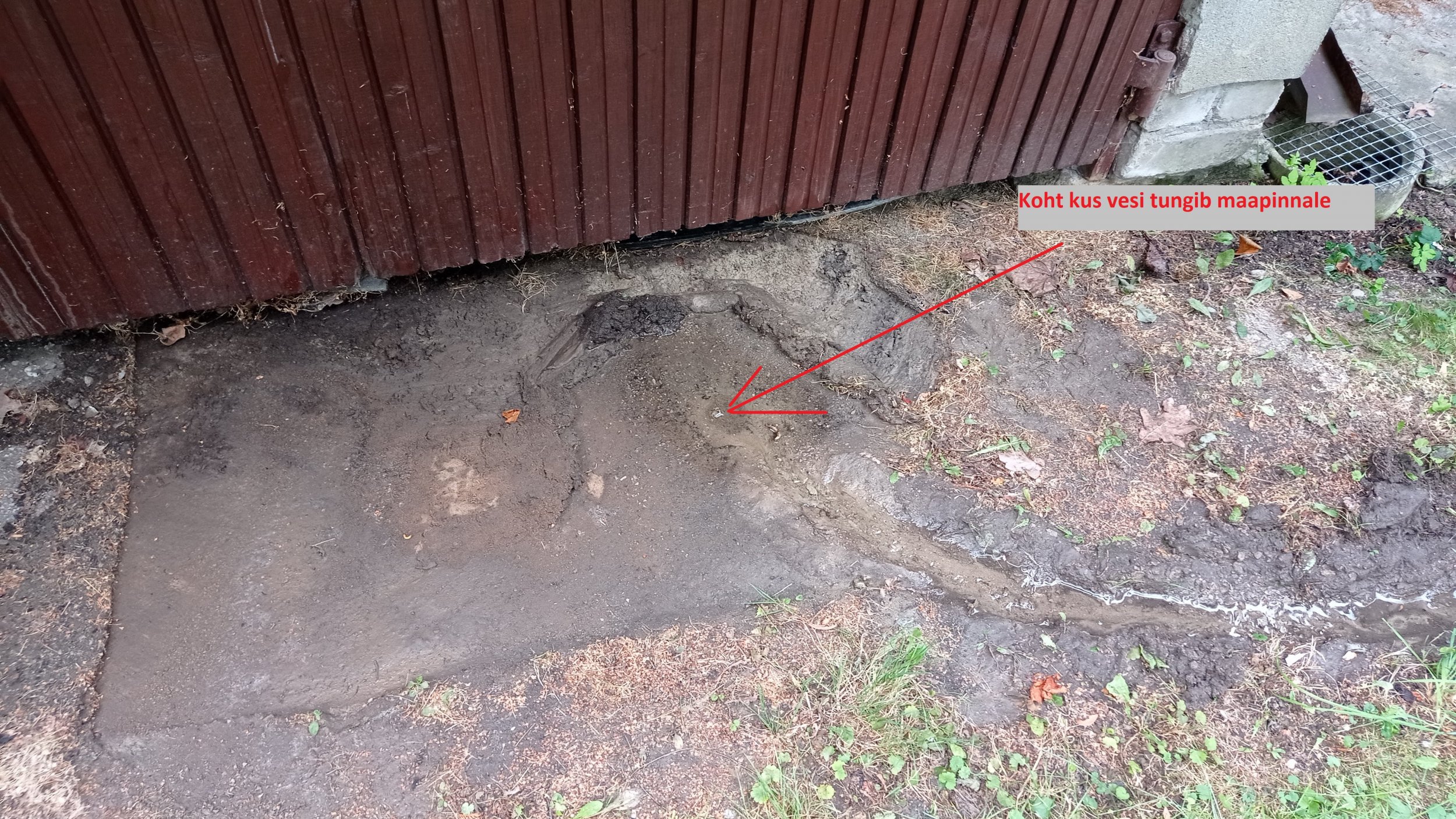 Merivälja (Tallinn, Pirita linnaosa) eramu garaazi ees tungis vesi maapinnale. Vaja oleks veetoruni kaevata ja leke kõrvaldada. Tallinna vee kaevu ja lekke asukohad nähtavad piltidelt.