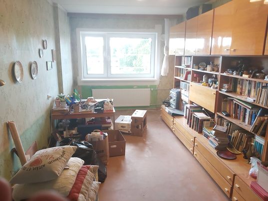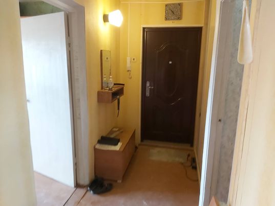 Momendil on seinad tapeeditud/värvitud. Eemaldada tapeet, põrandapapp, siseuksed koos raamidega. Renoveerimise ajaks on korter mööblist ja muudest esemetest tühi.