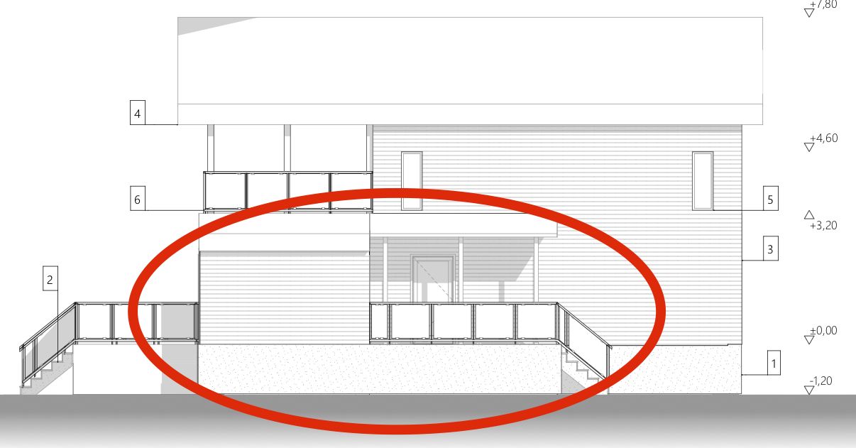 Terrassi, hoiuruumi ja välisukse ees asuva põranda põrandatalad toetuvad vabale vundamendi servale.