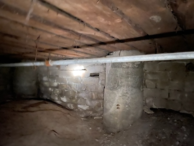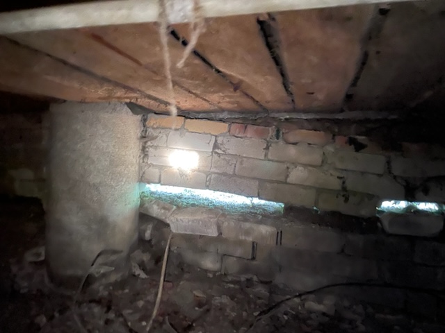 Maja vundamendi parandustööd. Tegemsit on 1970-ndatel ehitatud krohvitud puumajaga Pirital. Maja on ehitatud postidele,kuid postie vahel on ka tellistest müür,mis ühes kohas on nüüd ära vajunud ning tekkinud on vahe maapealse ning aluse müüri vahel. Pildid on tehtud maja alt. Väljastpoolt on näha ainult kerge vahe (ca20 cm). Maja aluse kõrgus on ca 1,2 meetrit Sinna pääseb ligi.