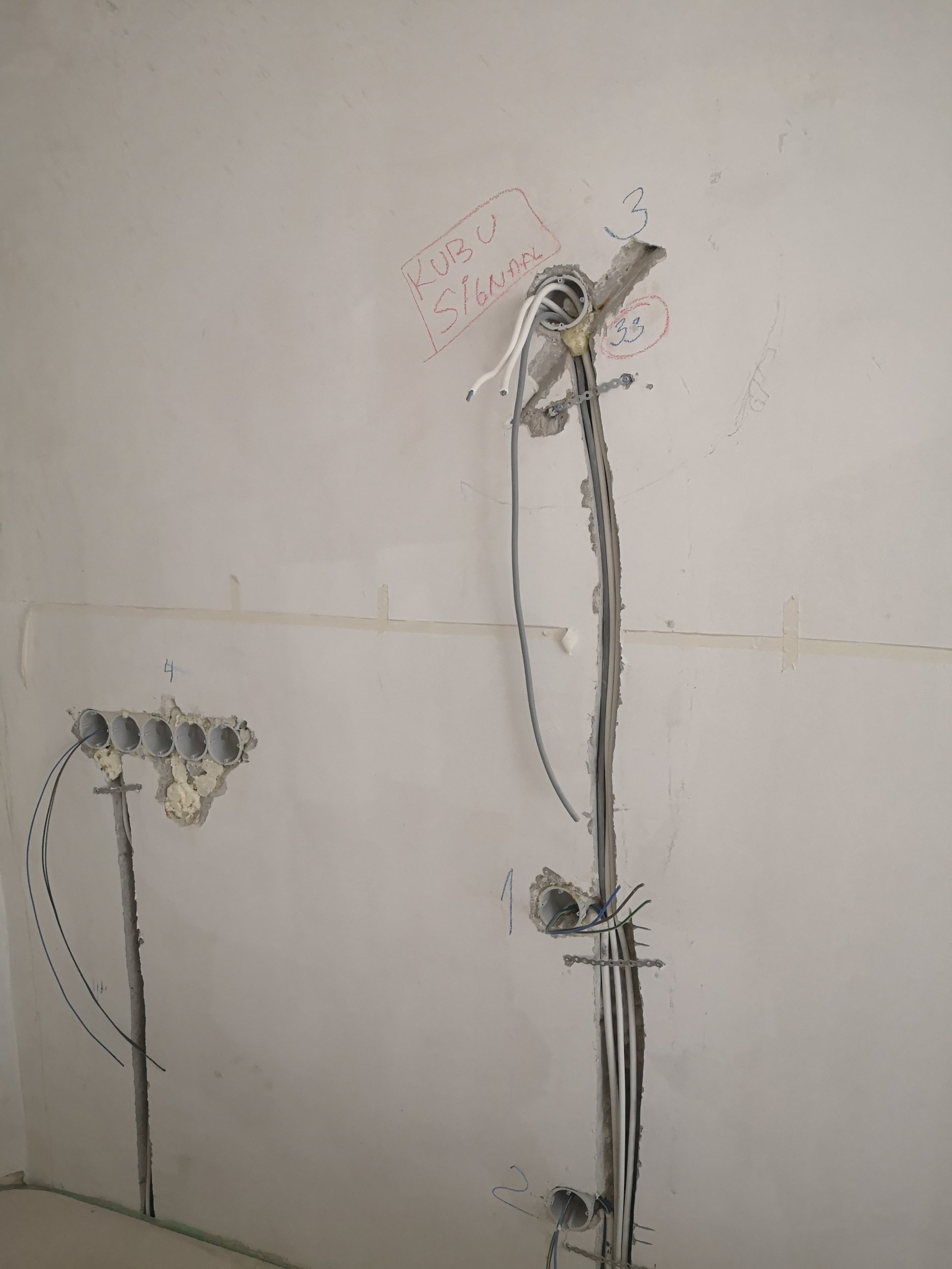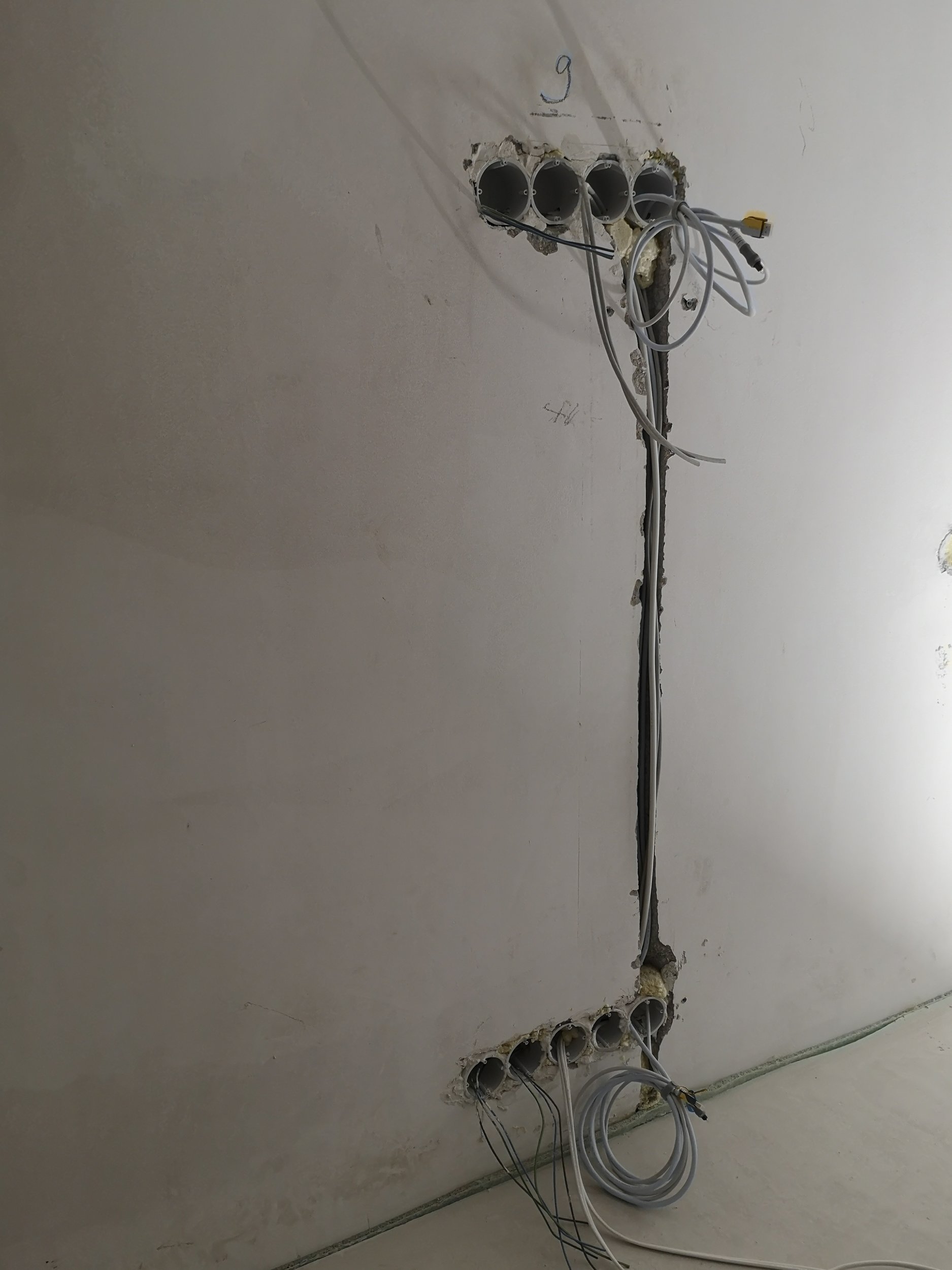 Vaja kinni pahteldada kaablite sooned, vt pilte. Lisaks 2 köögiseina sirgeks. Muudel seintel ebatasasused tasaseks. 160m2 seinte pinda kokku.