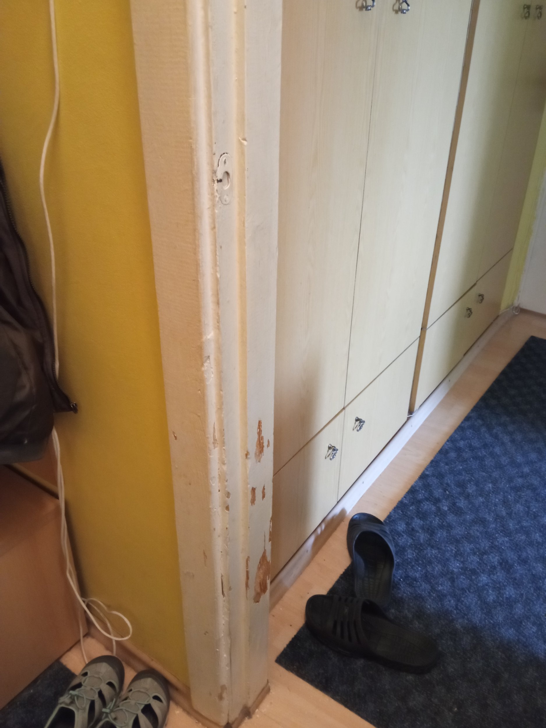 Esikute sanitaarremont (lagede, seinte värvimine), aga kindlasti ka siseuste korrastamine sh uksepiidad, uksi on 6. Uksepiitadele tuleks ilmselt paigaldada mingid hiljem äravõetavad kaitsed (vineer?) kassile kraapimiseks. Vaja oleks korrastada ka välisukse sisepind.