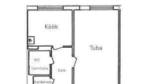 Tegemist on ühetoalise tüüpkorteriga, millest on välja lammutatud wc/vannitoa/panipaiga boks(ka põranda osa). Uuel plaanil kujutatud vannitoa/esiku vaheseinad hetkel veel puuduvad.