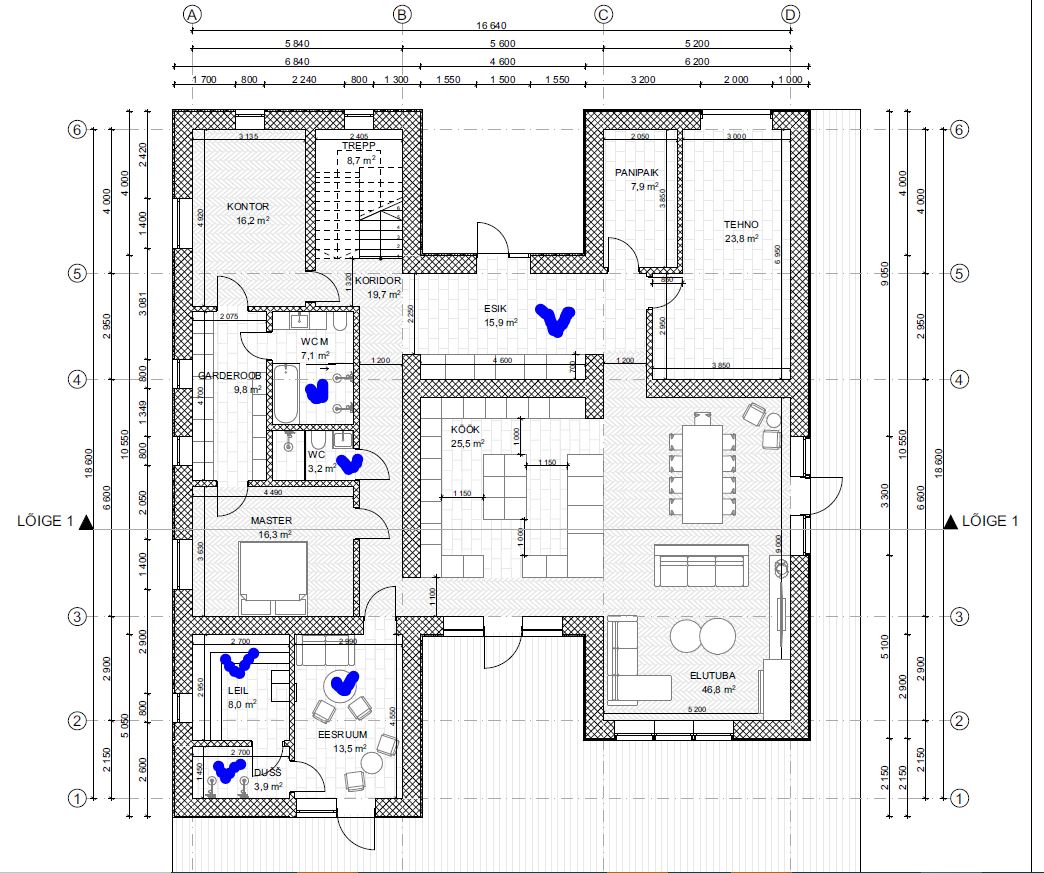 Materjali hangime meie, sealjuures arvestame ehitaja soovitusi. Seina ning põranda plaadid on veel ostmata - võtame arvesse ka plaatide valikul ehitaja soovitusi paigalduse keerukuse/ajakulu osas.
