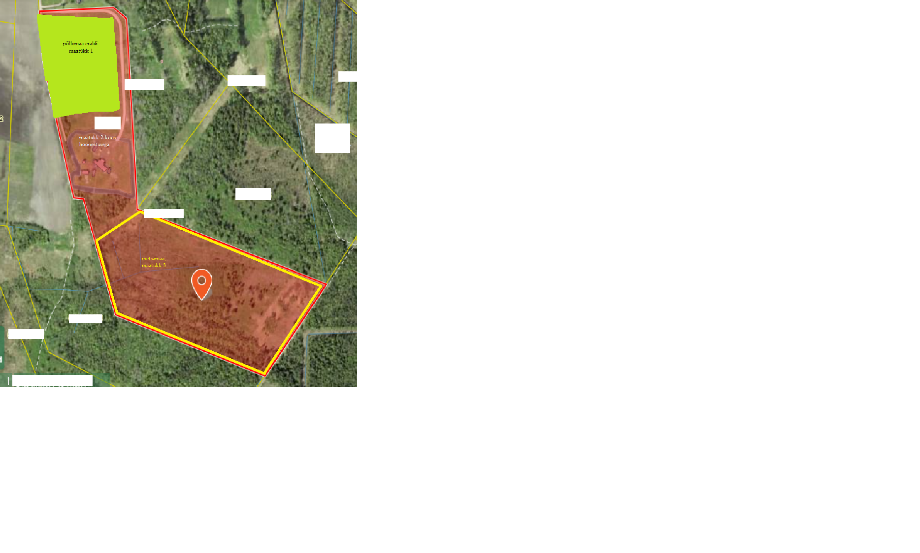 Omaniku soov on jagada: 1 tükk enamus põllumaast; 2 tükk hoonestatud kinnistu osa koos sissesõiduteega, 3 tükk metsamaa.
