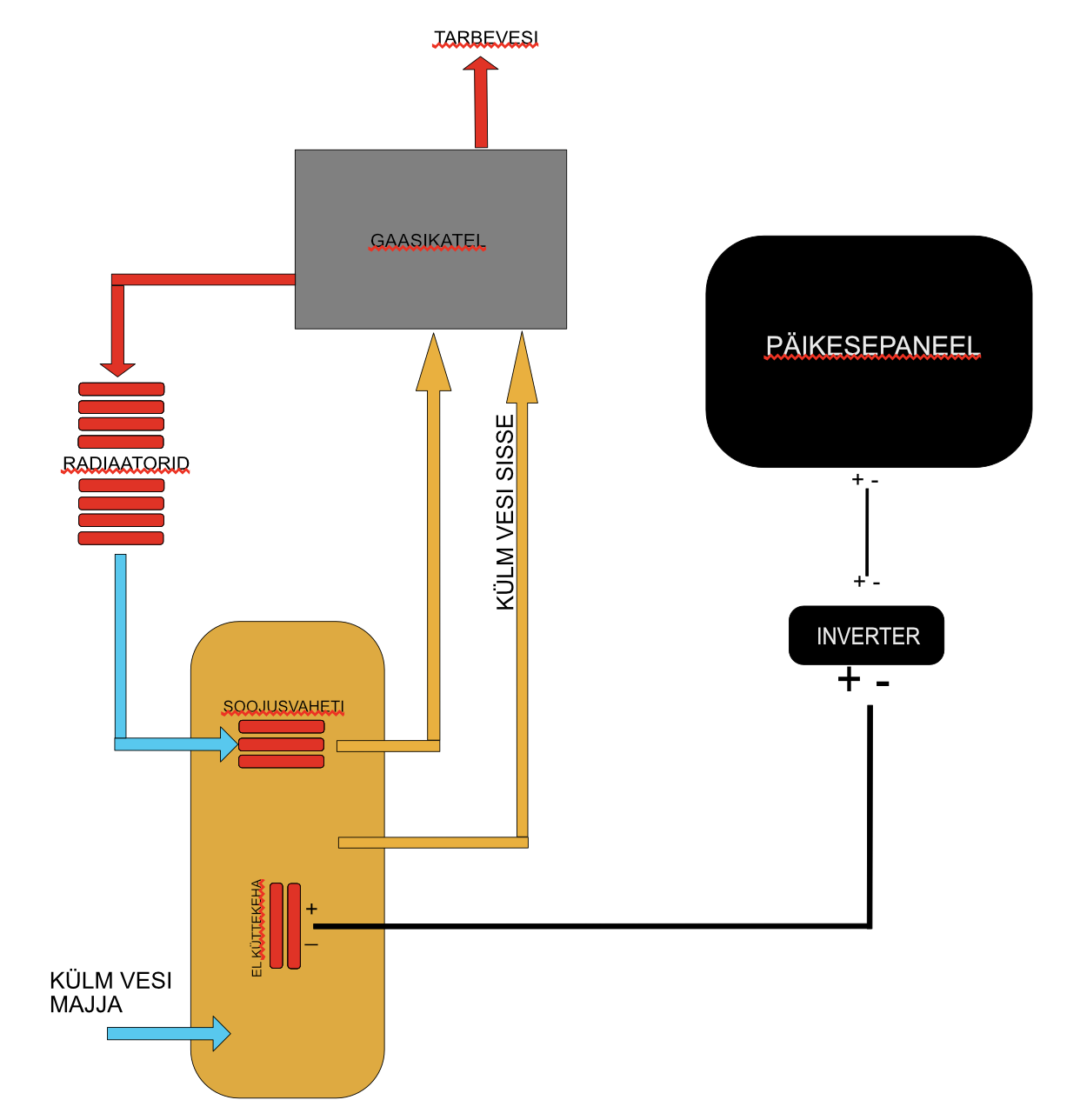 Olemasolevale Wiessmani gaasikatlale soov lisada soojusvaheti ning elektrilise küttekehaga akumulatsioonipaak. Elektrilist küttekeha peaks olema võimalik toita nii võrgust kui päikesepaneeliga. Majal lamekatus, paneelide paigaldamine lihtne.