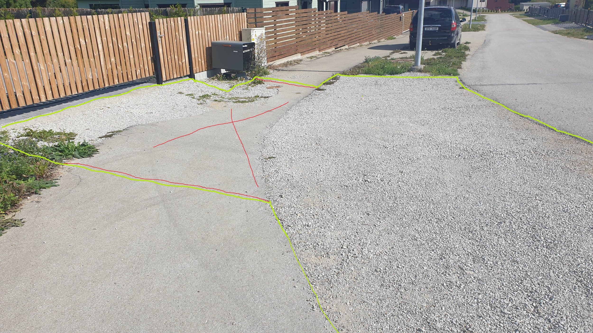 Põhjas on olemas killustik. Vaja eemaldada osaliselt katkine asfalt ja sättida kõrgus paika.
