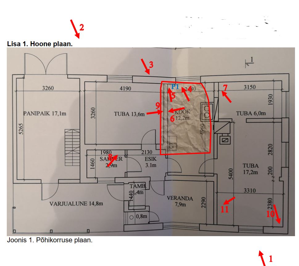 on märgitud joonisel 1 Lisas 1. Seene viljakehasid võis täheldada nii hoones sees kui