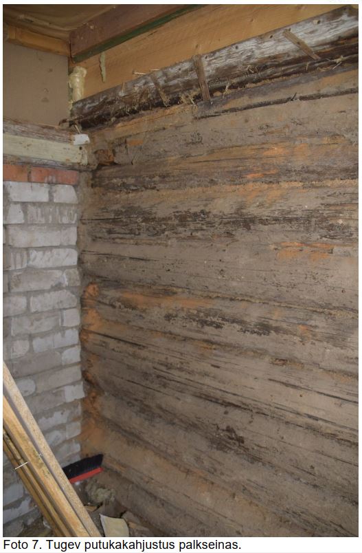 Lisaks on hoone palkseintes mööbli-toonesepa vastsete kahjustuse tunnused (Lisa 2, fotod