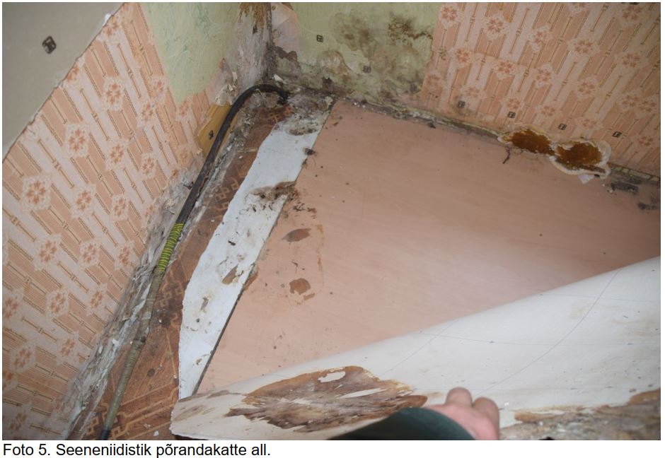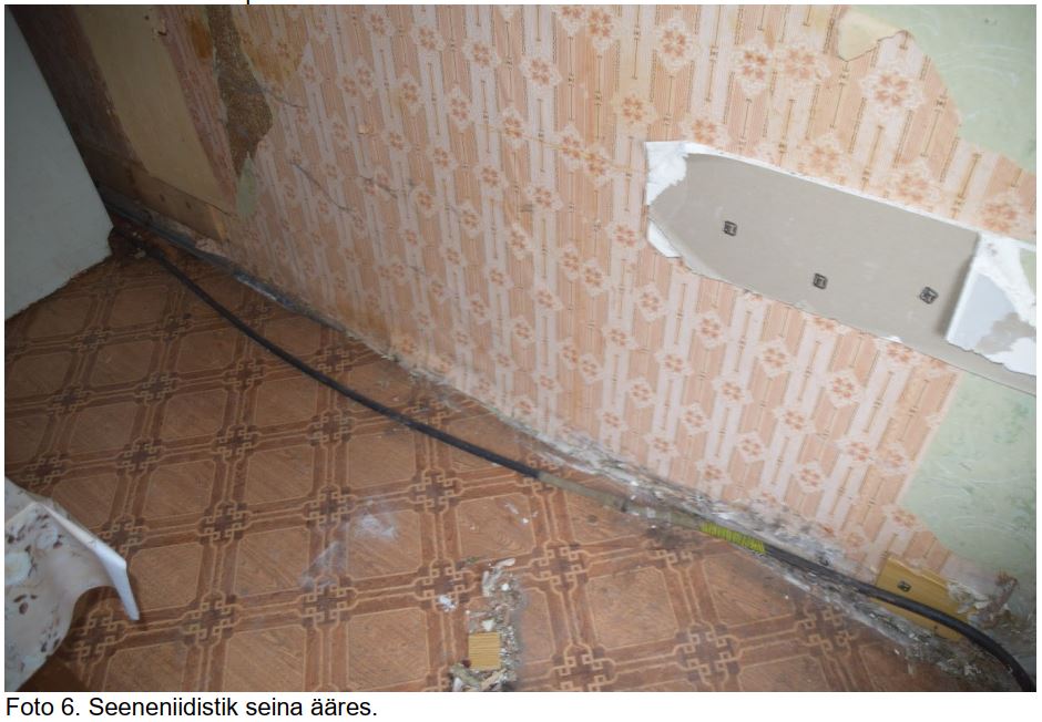 Hoone köögi ja kõrvalpaikneva toa seina ääre põrandakonstruktsioonid ja seinte alaosa on