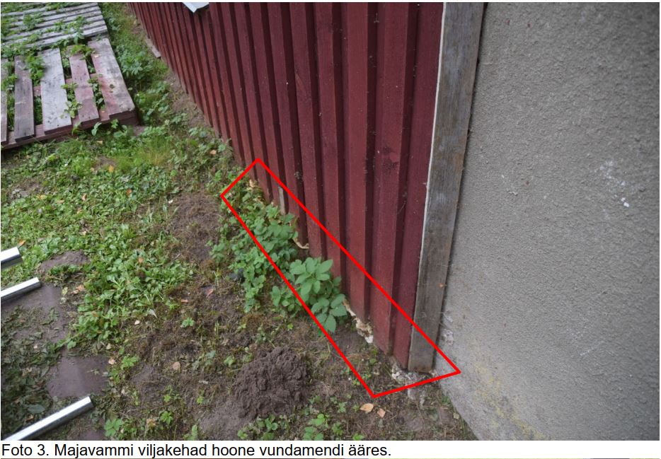umbes 50 cm kõrgusele kahjustatud majavammi poolt (Lisa 2, fotod 2-6). Kahjustuse piirkond