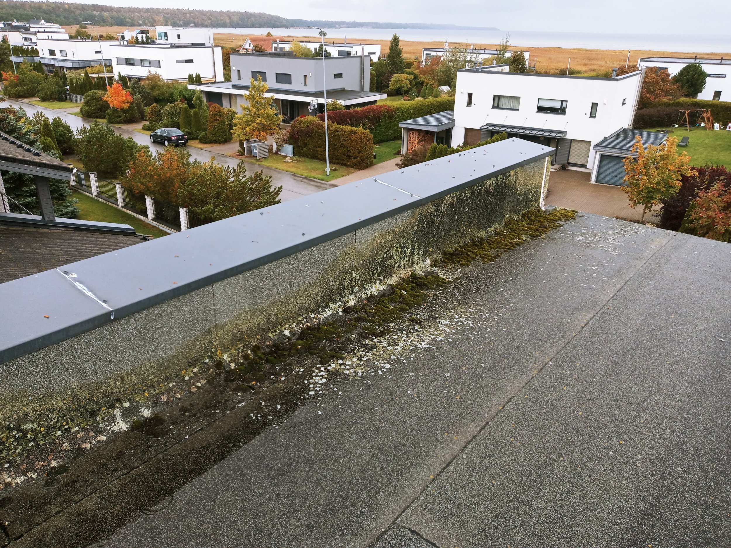 2. Samal katusel teises otsas puhastada ja parandada vett läbi laskev koht, mis asub katuse servas. Sulatada peale uus kiht, otsaseina pikkuses kaarduv osa, suurusega ca. 1,5x6m