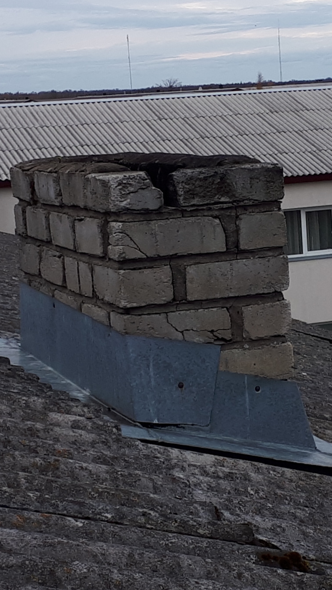 Kortermaja vanade korstnapitside lammutus ja uute ehitus. Tõstuki rent, vana lammutamine, kivid ja praht alla. Uued kivid üles, korstende ehitus, vuuki armatuur, praht utiliseerida. Ühel korstnapitsil kümme rivi ja kümme rida silikaattellist, kokku 100 kivi. 6 korstent, 600 kivi. Ülemine äär pleki alla. Vajadusel ka uus plekikrae, silikoon. Kortermaja on 3 kordne, viilkatusega.
