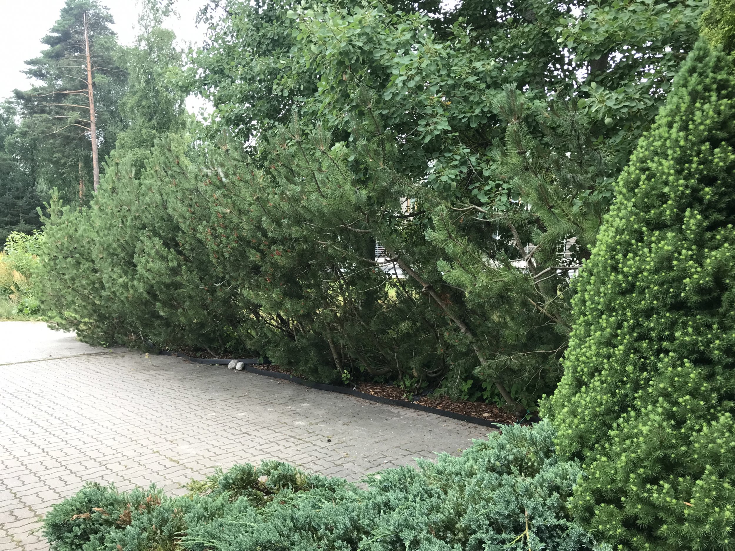 Olemasoleva mägimänni heki eemaldamine koos juurtega ja äravedu, ning uue elupuu heki istutamine. Mänd on kuskil 2,5 m kõrge ja üks pool hekist on väga niru. Elupuud voivad olla meeter, või isegi alla selle.