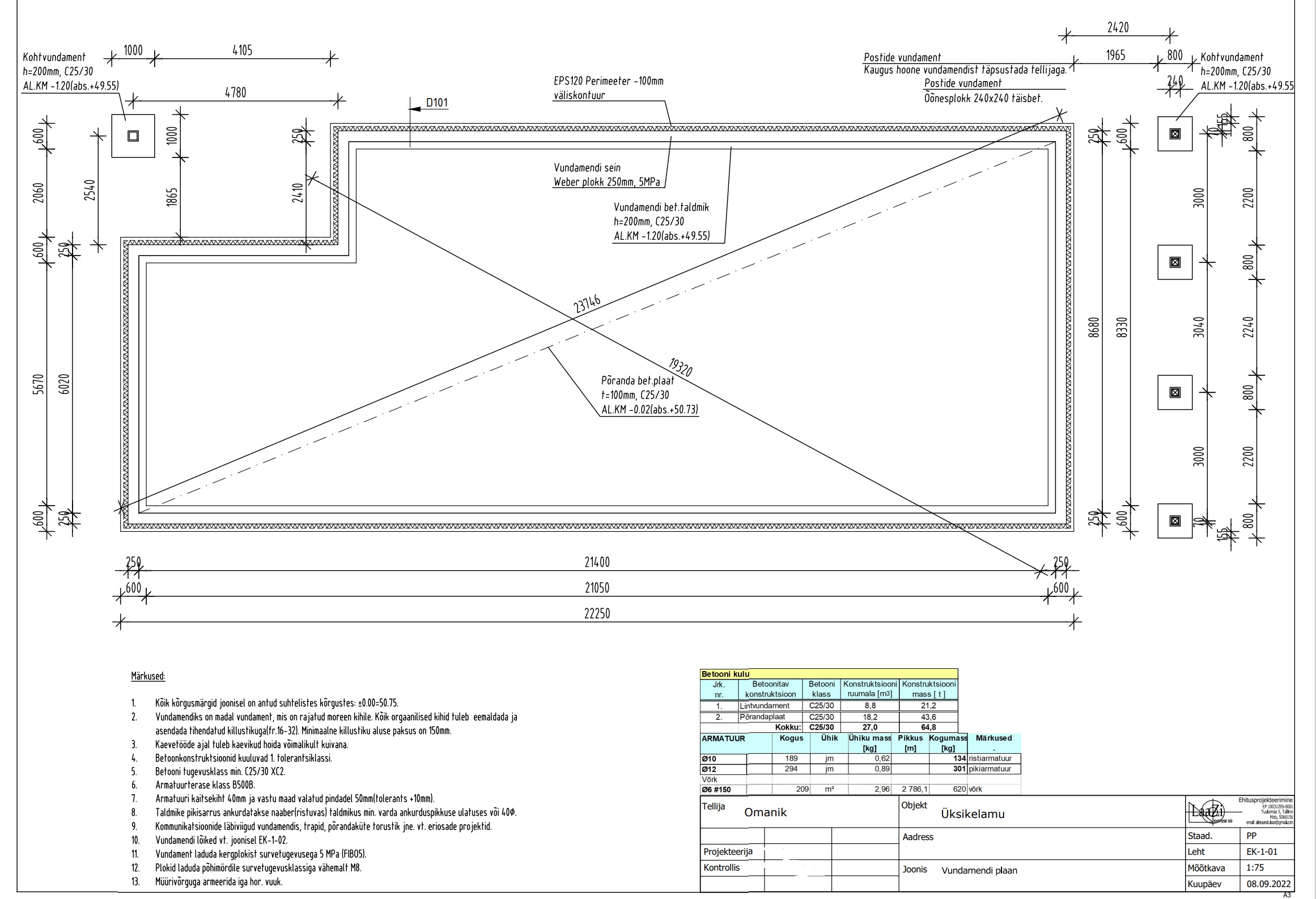 On vaja teostada järgmised vundamenditööd.