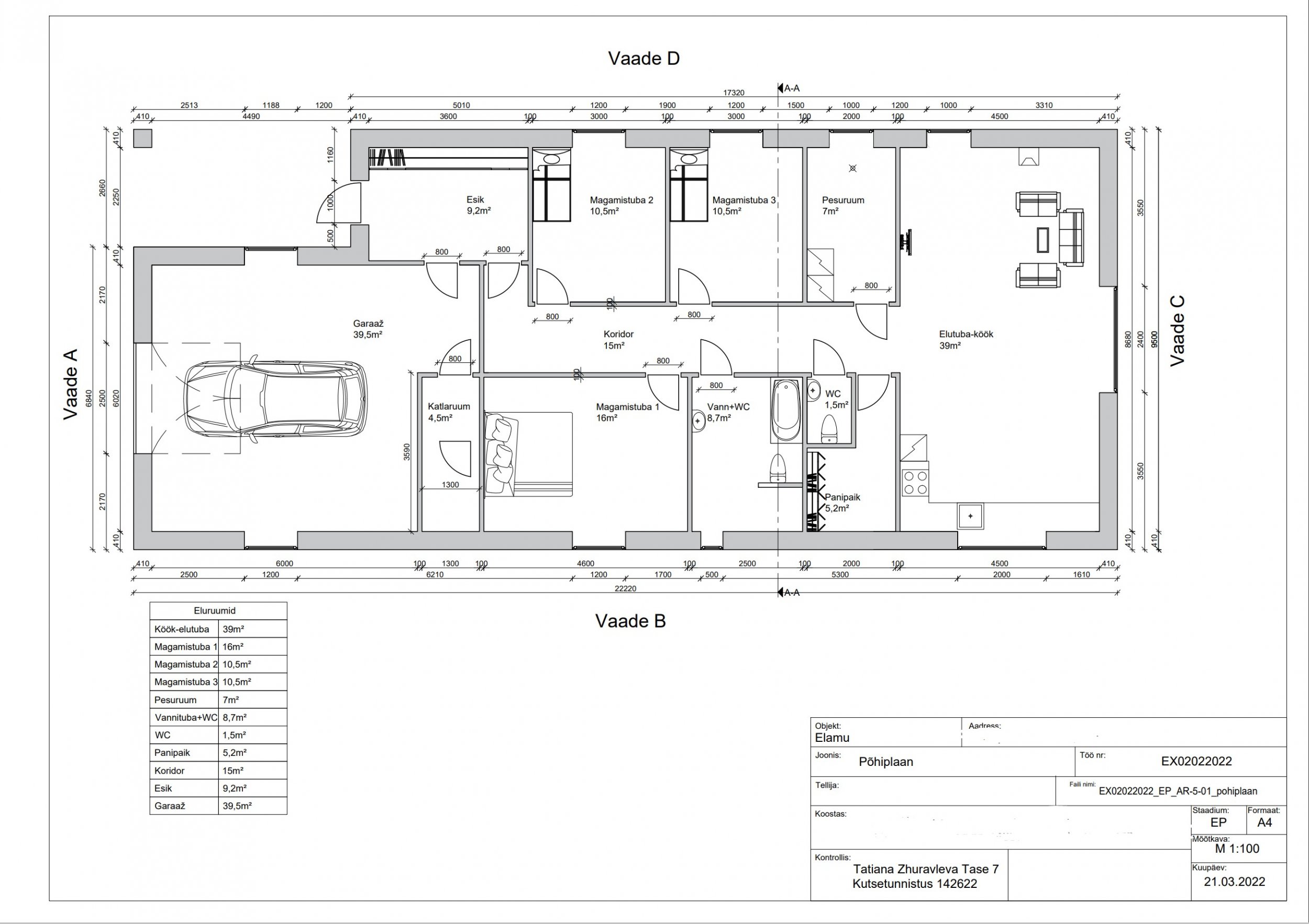| Ehitusmaterjalid: | Töö tellija poolt |