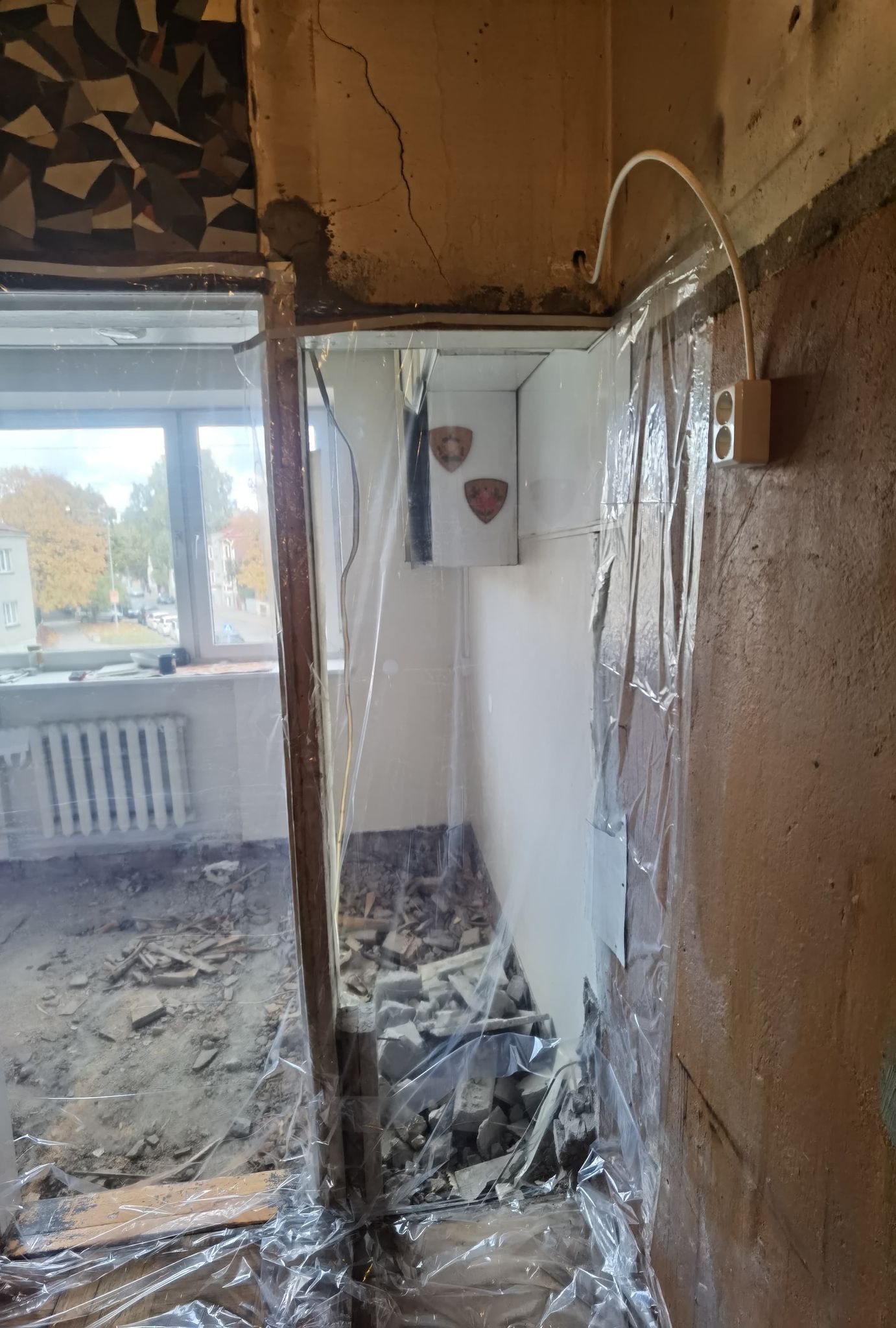 Ühel pildil on näha köögiukse leng, mis vajaks eemaldamist.Kuid kui lähemalt vaadata pilti,siis tundub ,et seal üleval sein kipub alla kukkuma,kui puitkonstruktsioon ära võtta.Sinna oleks vaja kas tasandada/toestada. või üldse kuni laeni maha võtta.