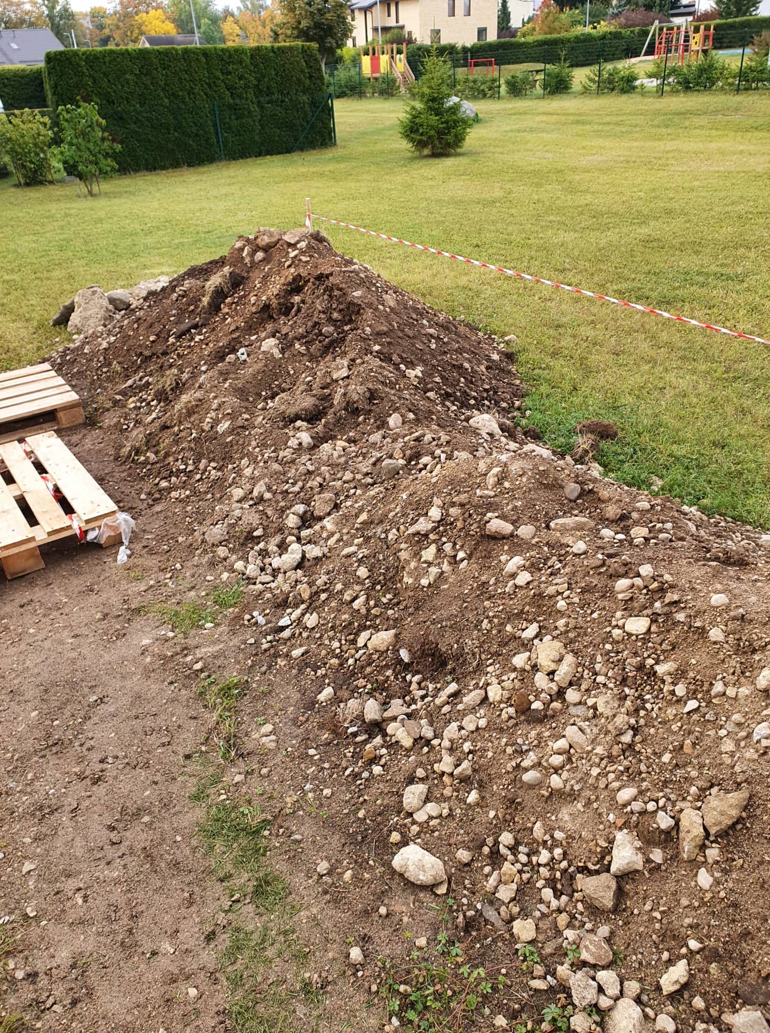 Oleks vaja ära viia või utiliseerida pinnasetäidet. Tegu on korterelamu kõrvalt välja kaevatud pinnasega, et paigaldada drenaažitoru ja väike sadeveekast. Täiteks läks 6,5t killustikku + ca 15m 110mm toru ja kast 60x60x120mm. Pinnas on muld segatud kividega. Aimu kogusest ja kõigest muust saab loodetavasti piltide pealt.
