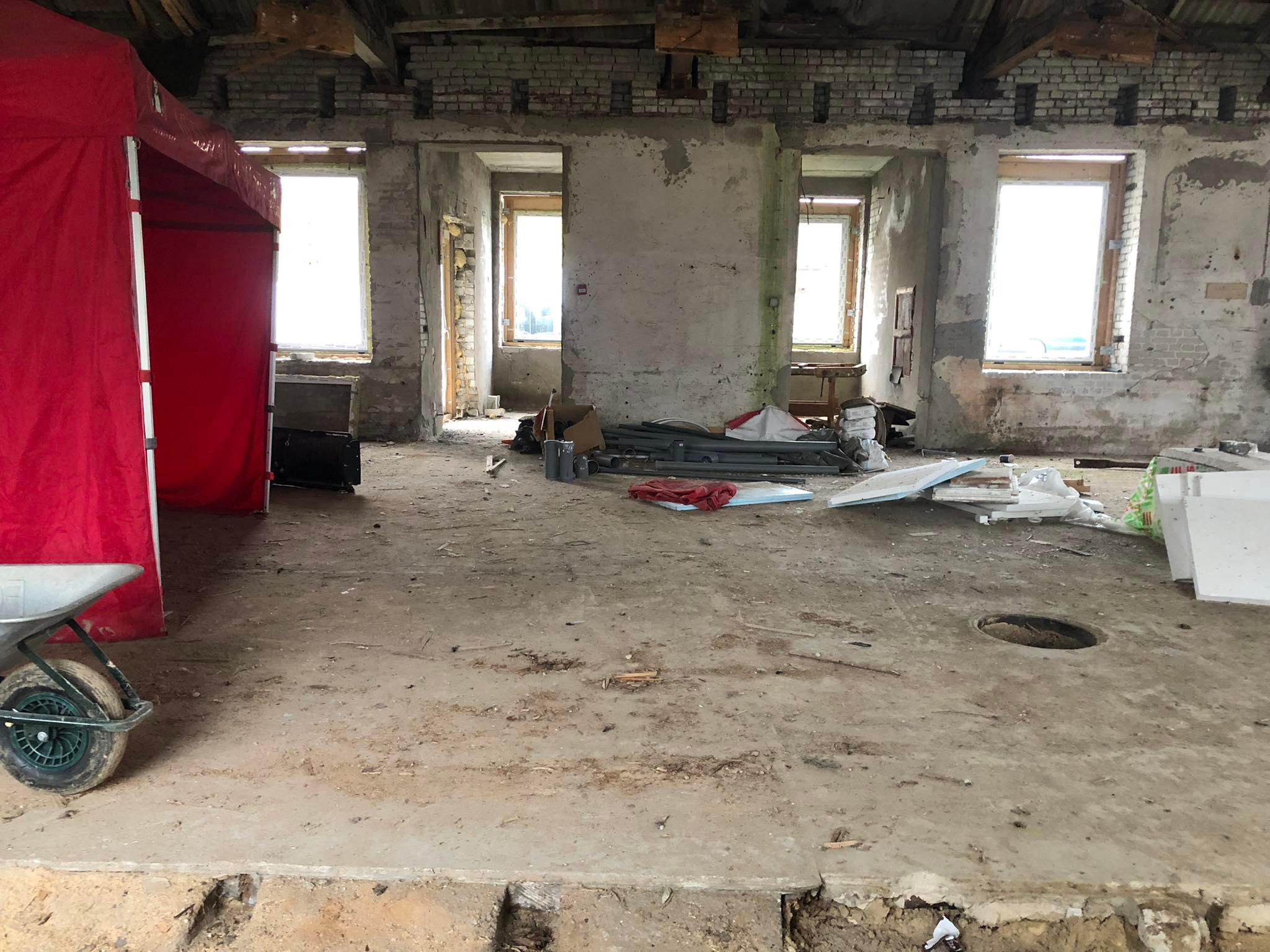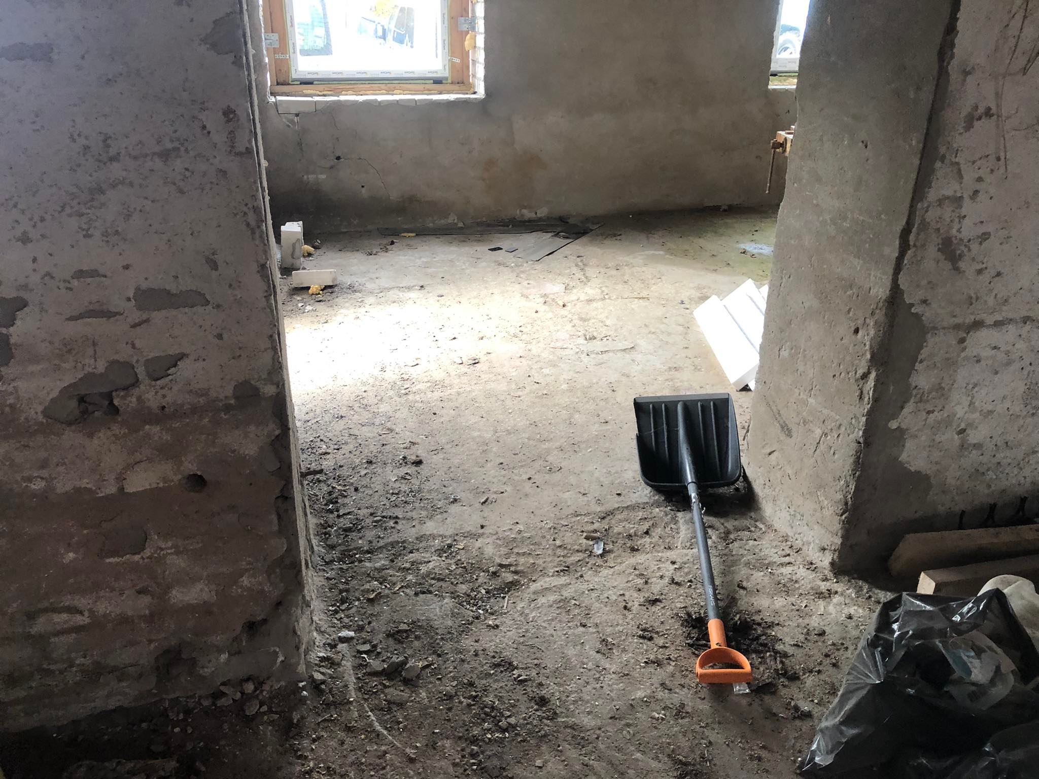 Hoone 1.korrusel, pääseb igat pidi ligi suure veoautoga, et betooni ja materjale tuua. Betooniauto saab ilusasti kohapeal töötada.