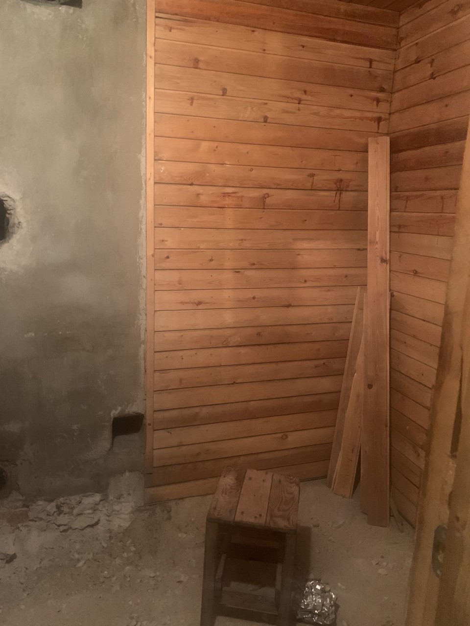 5. Pooltes seintes soovin kasutada vana laudisvooderdust. Seinad tuleks ehitada kuni plaatimisvalmiduseni.