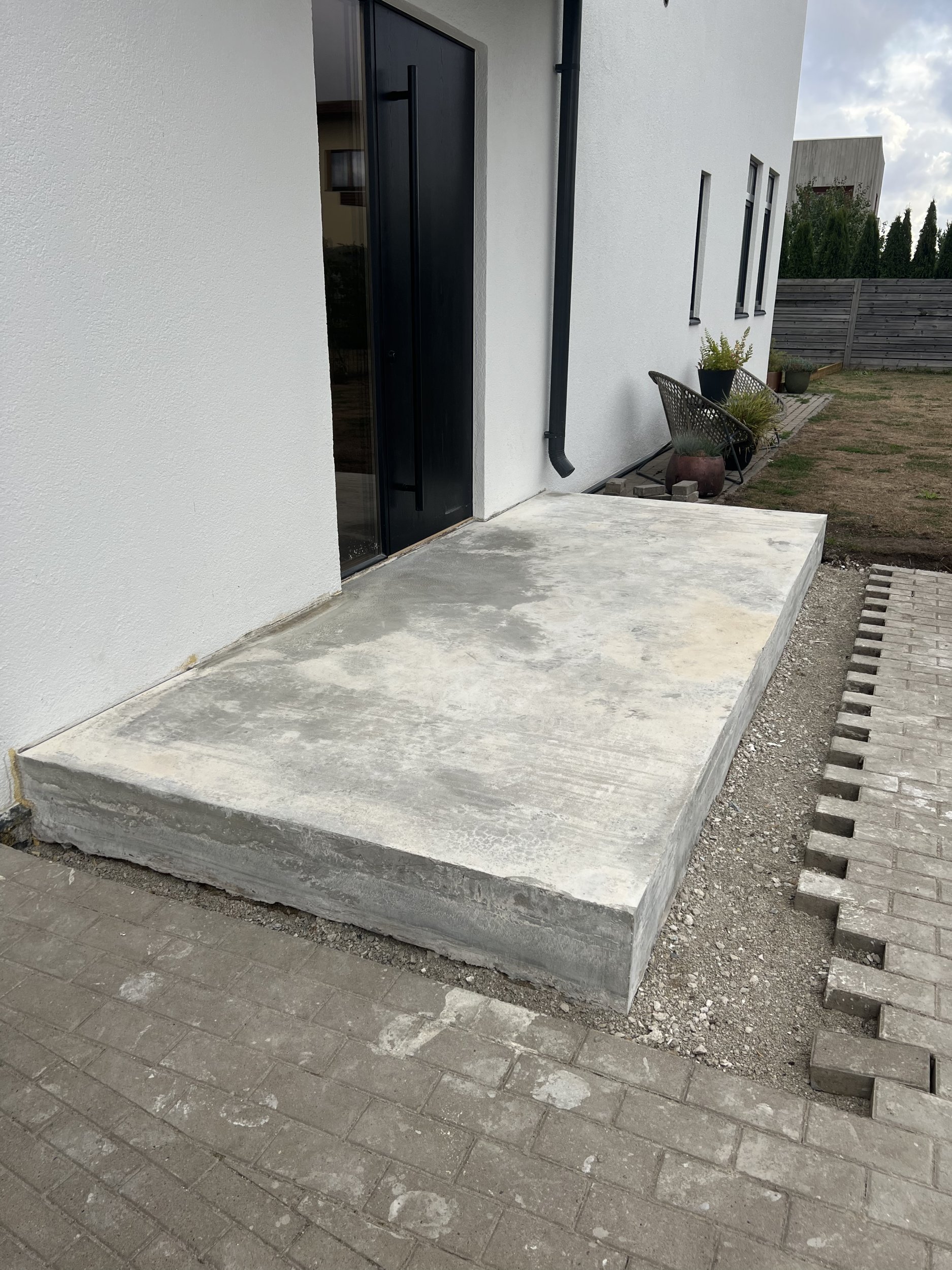 Vaja lihvida Betoontrepi kalded paika ja viimistleda ääred. Vihmase ilmaga tekib hetkel ukse ette lomp.