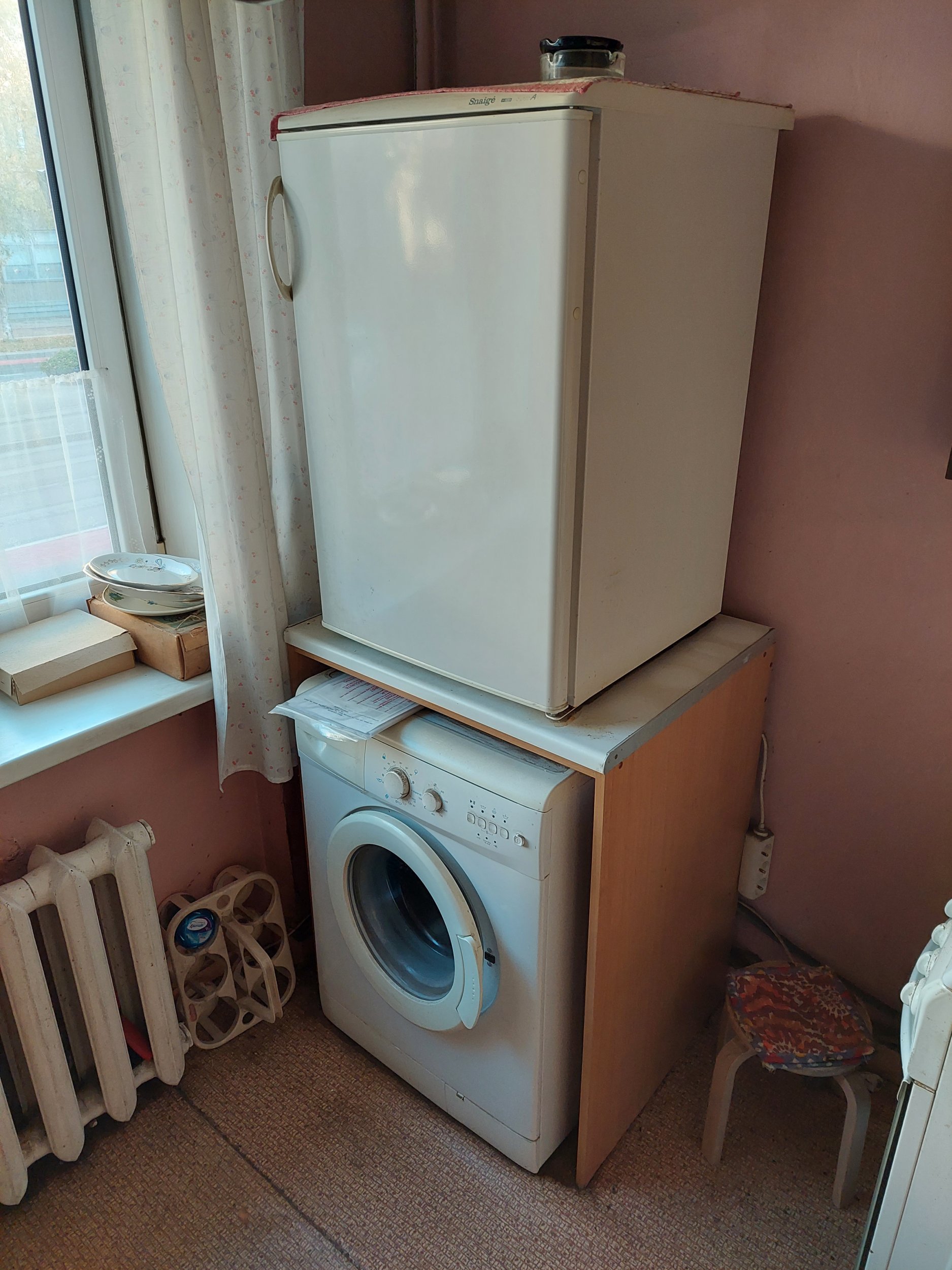 Sisuliselt on vaja ühest korterist ära viia ilmselt mitte töötav külmkapp ja lahti ühendada ning ära viia pesumasin.