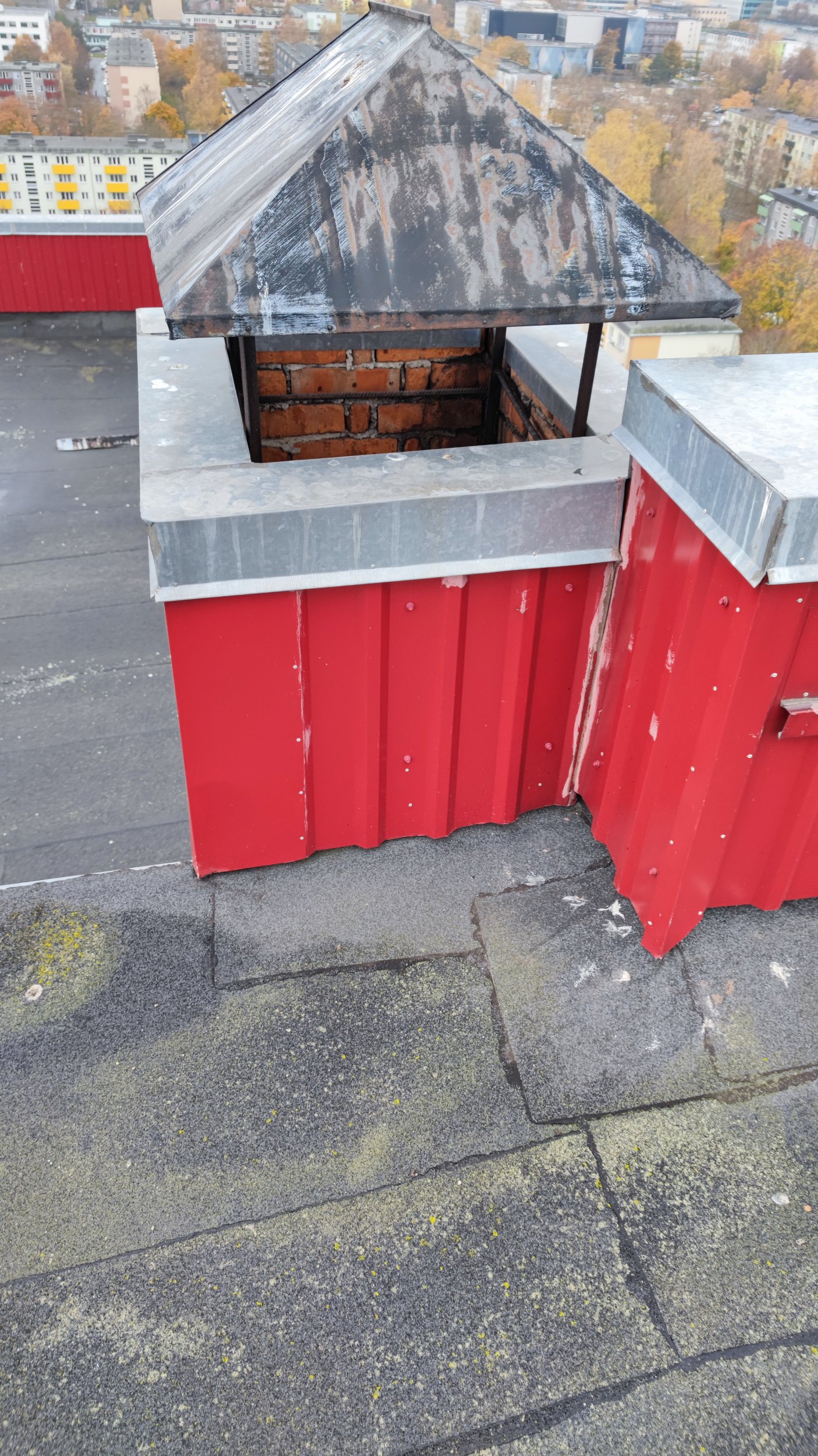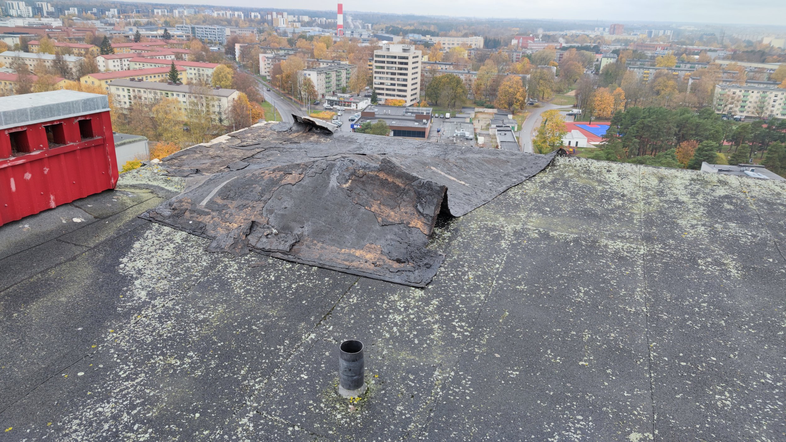 1) Katusel läks lahti tükk turvapappist, pind on ca. 2x2 meetrit