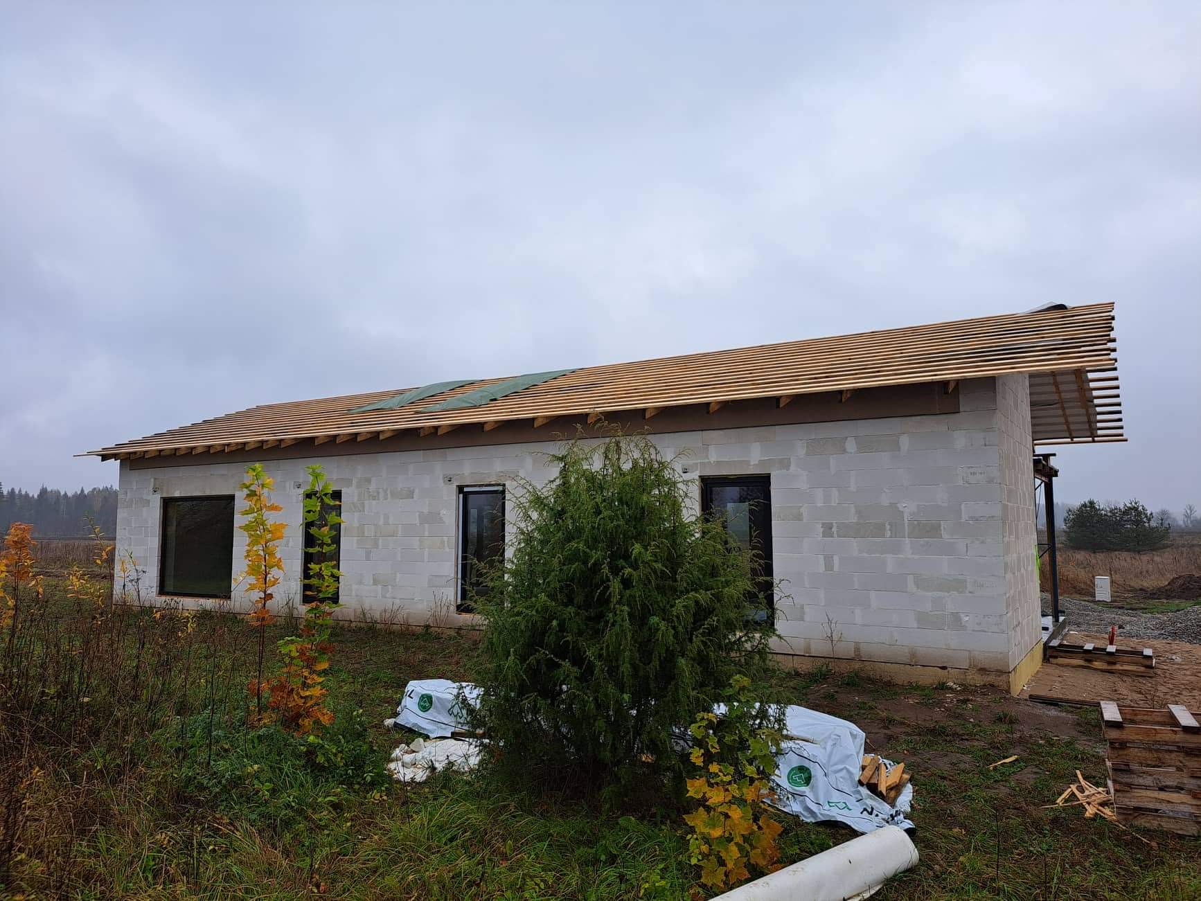 Weckman elegant klassikalise katusepleki paigaldus, lisaks veerennid. Katusel paigaldatud kolm Velux akent, olemas on plekkkatuse jaoks Veluxi installeerimiskraed. Katuse otsa -ja räästalaudise paigaldus. Kõik materjal on olemas. Katuse pinda c. 170m2