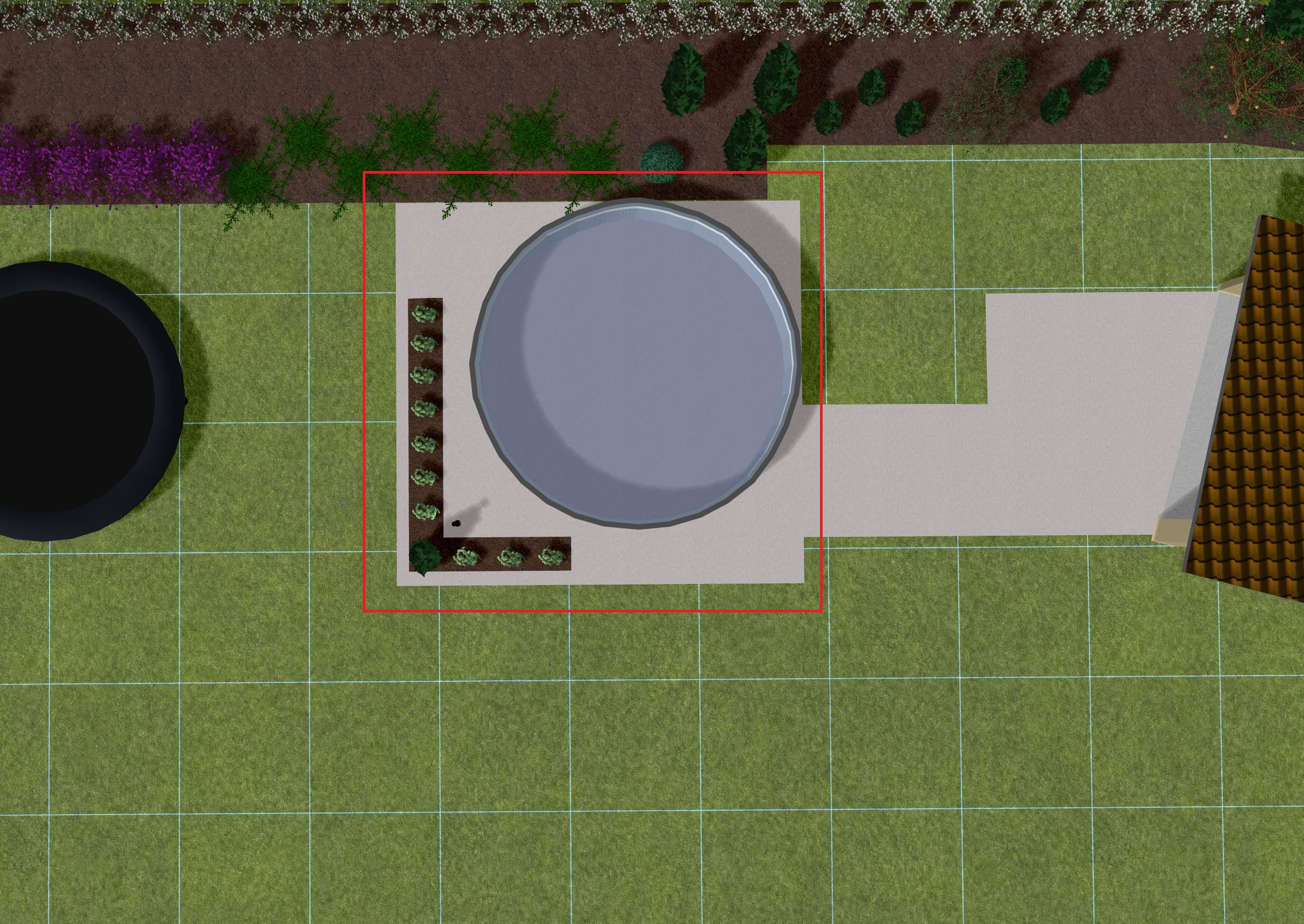 Kiviplatsi plaatidega osa mõõdud on 600x640 cm, millest väljapoole tuleks veel äärekivid. Platsi ühte nurka jääks äärekividega ümbritsetud lillepeenra osa vastavalt joonisele.