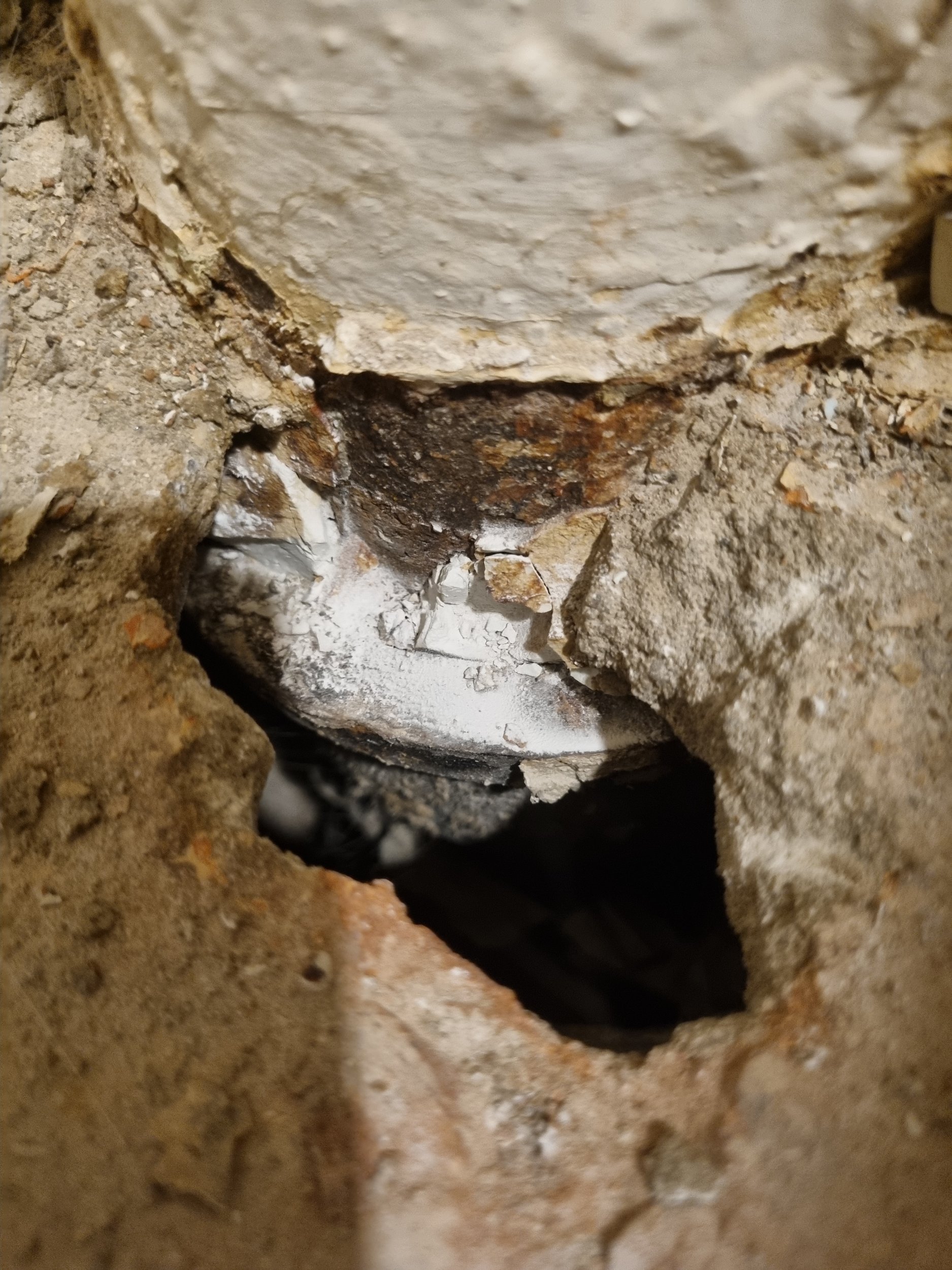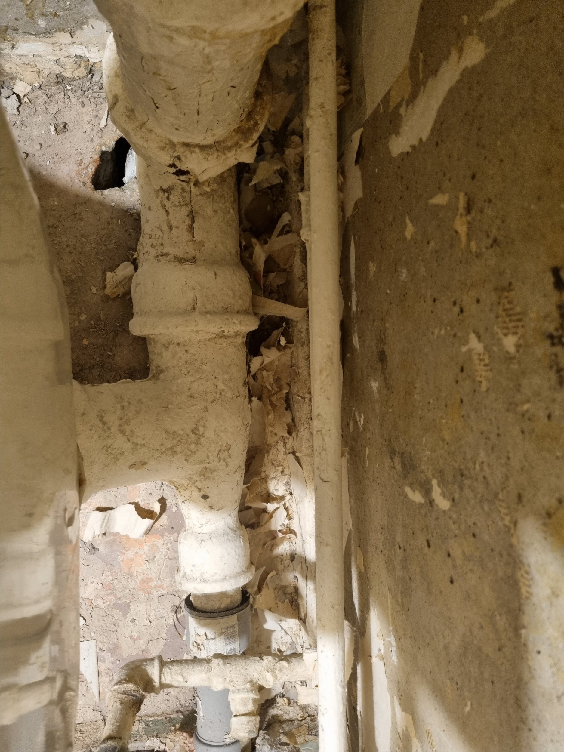 Vahetust vajab korteris vana malm püstak. Pilt on tervest makm püstakust kuid ülemine korter vahetab samal ajal püstakut mis tähendab,et ülemine liide tuleb plastikule.
