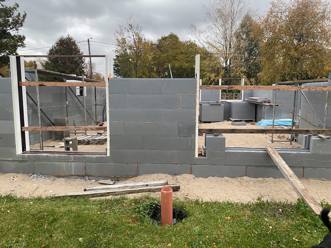 Esimese korruse seinte püstitamine maja tulevase põranda kõrgusest kuni 1,5 m kõrguseni TermoPlokkidest Silver 420 (esimese korruse kõrgus 2,7 m).