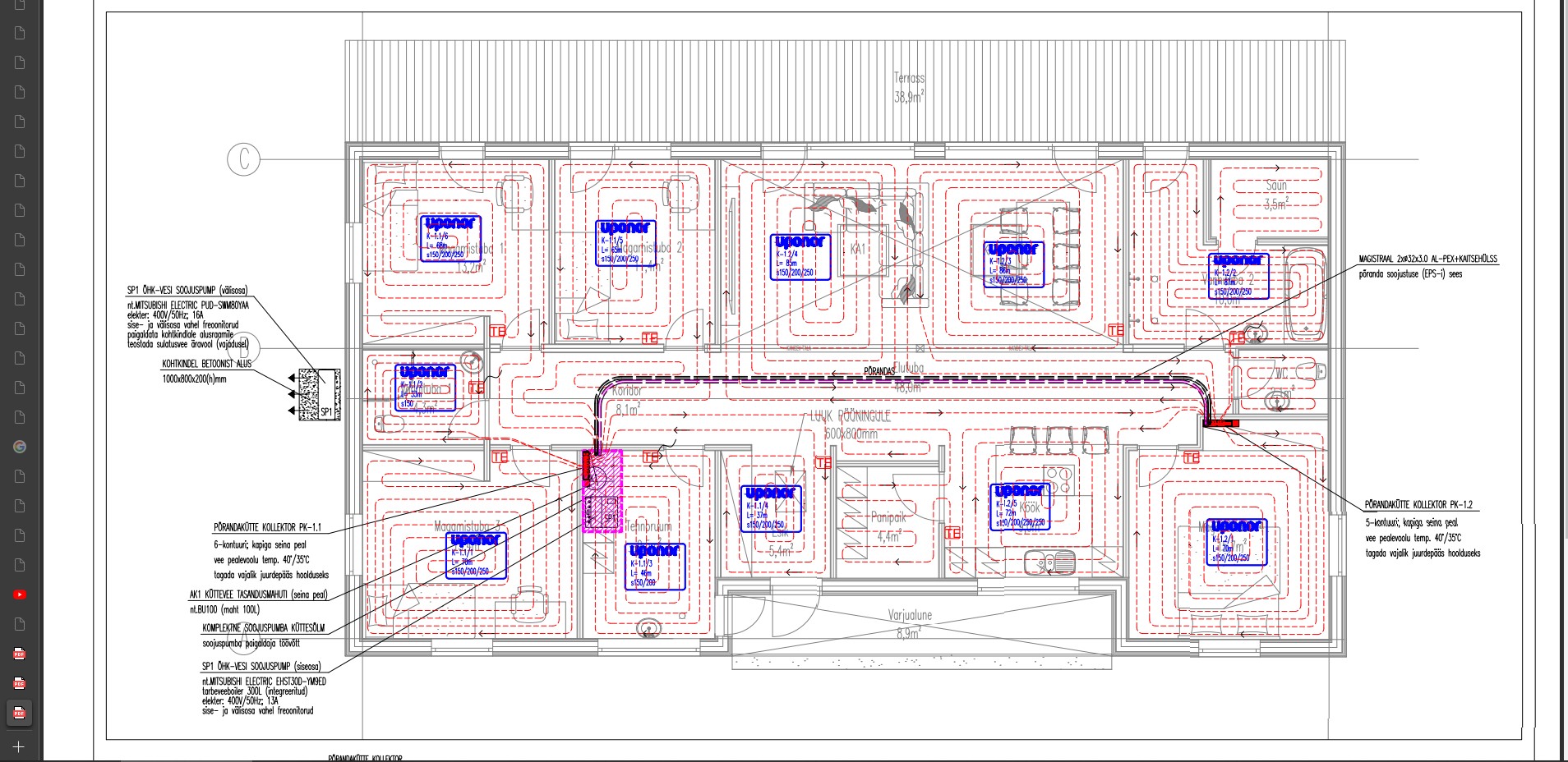 Plaadi armeerimine, põrandaküttetorustiku projekti järgi paigaldus koos survestamisega, L-ploki toestamine ning muud valueelsed vajalikud tööd. Armatuur (8mm võrk, 10mm varras ja 6mm rangid), EPS ja küttetorustik olemas koos kollektoritega olemas. Betooni tellib töö teostaja. Plaadi perimeetri soojustamine.